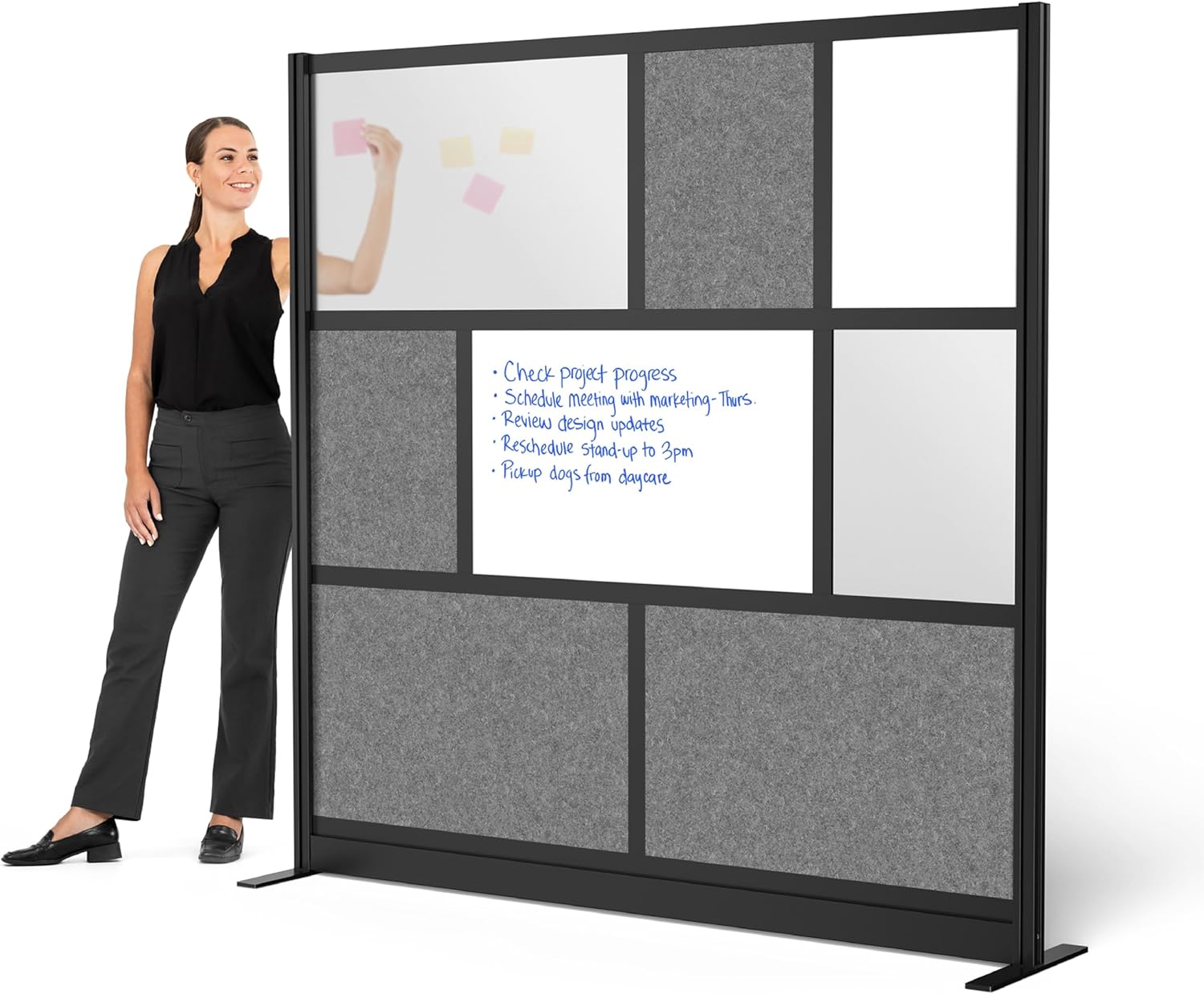 Workflow Modular Wall | Room Divider with Whiteboard, Sound-Dampening, & Frosted Acrylic Panels | Expandable Office Partition for Privacy & Productivity (70" x 70")