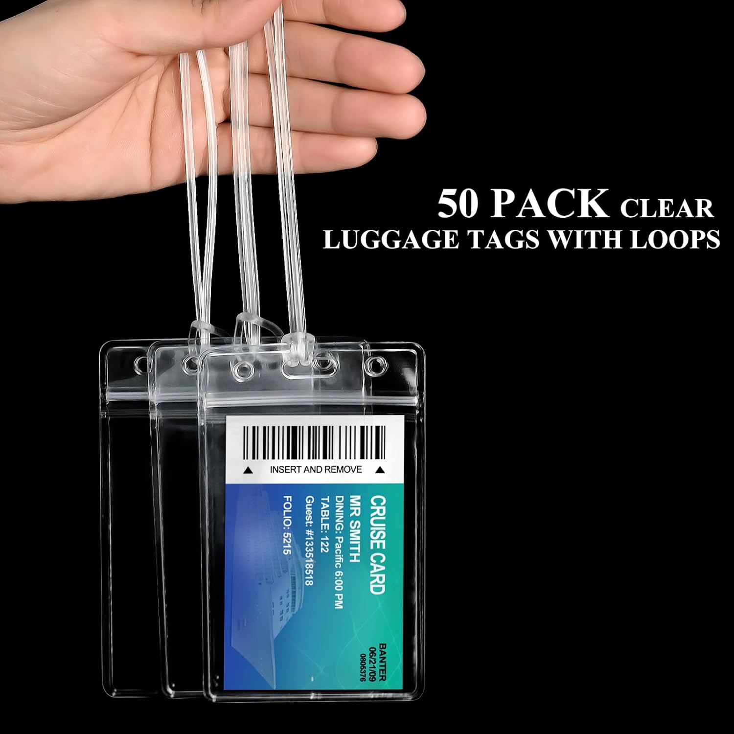 - Package Includes: 50 pack clear luggage tags and 50 pack luggage loops straps. Abundant quantities to meet your exhibition, activities, daily use and replacement needs