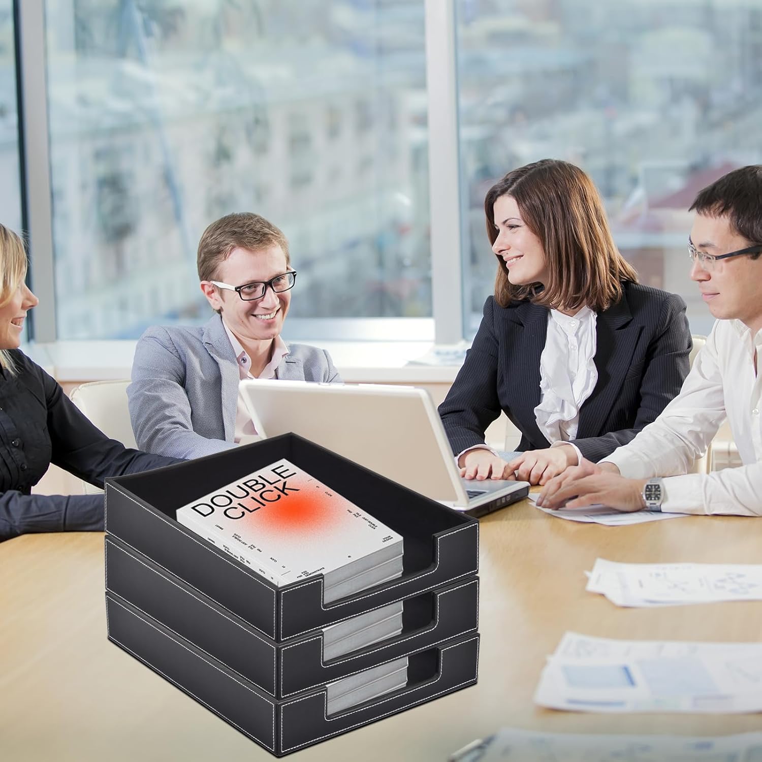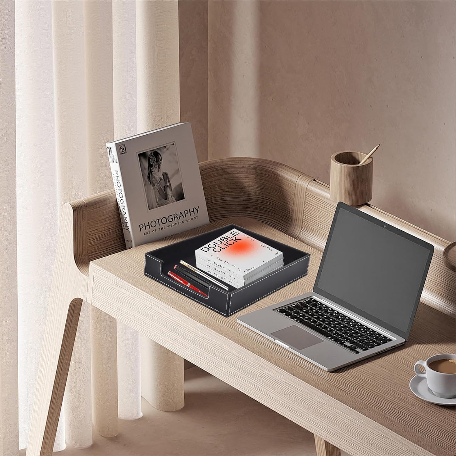 Leather Letter Tray, Office Supplies Desk Organizer for Mail Paper Files Magazines Jewelry Cosmetics,Luxury Letter Holder&Multipurpos Stackable Office Desktop Storage Box,Black