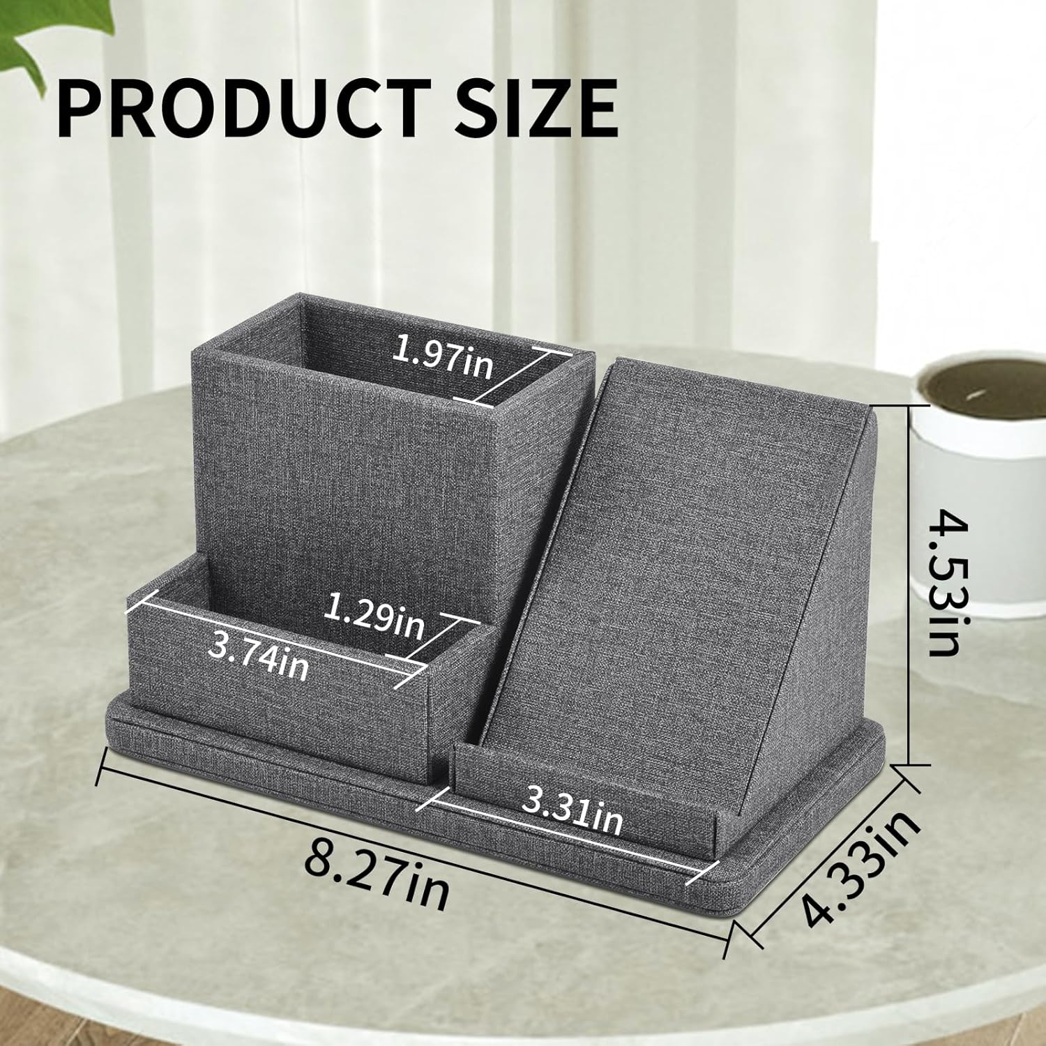 Multi-Function Pen/Pencil Holder-Linen Leathe Excellent Cell Phone Touch Screen Solution Holde-Business Card Holder/Sticky Note Tray,Desk Organizer for Office Supplies,Desktop Caddy,Grey