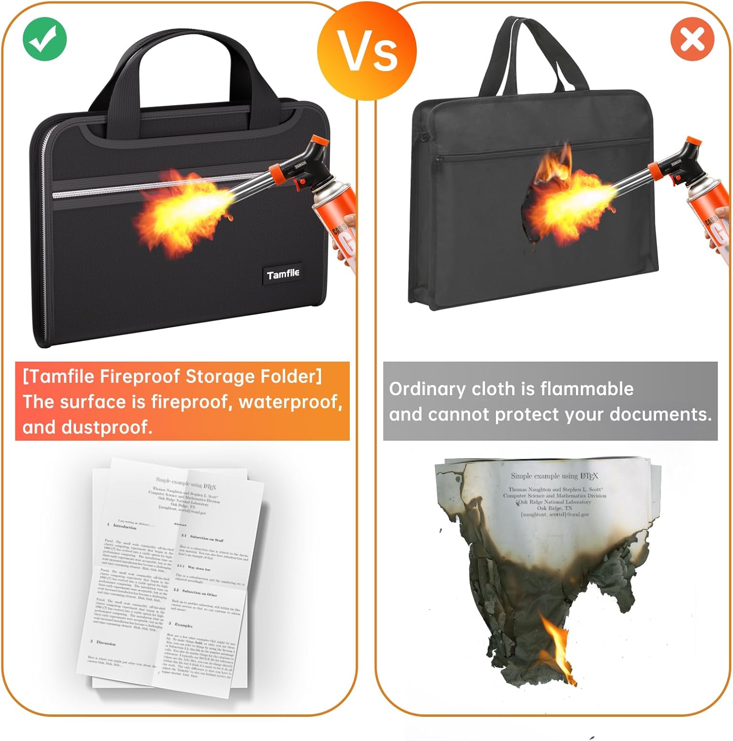 - [Tamfile Fireproof Storage Folder] The surface is fireproof, waterproof, and dustproof. The folder surface is made of fireproof and waterproof upgraded silicone fiberglass fabric, which can withstand temperatures up to 2200°F and has passed SGS testing (UL94 certification). File folders protect valuable items and information. Save and organize your valuable materials, artifacts, important documents, office supplies, and more with our advanced fireproof multipurpose folders.