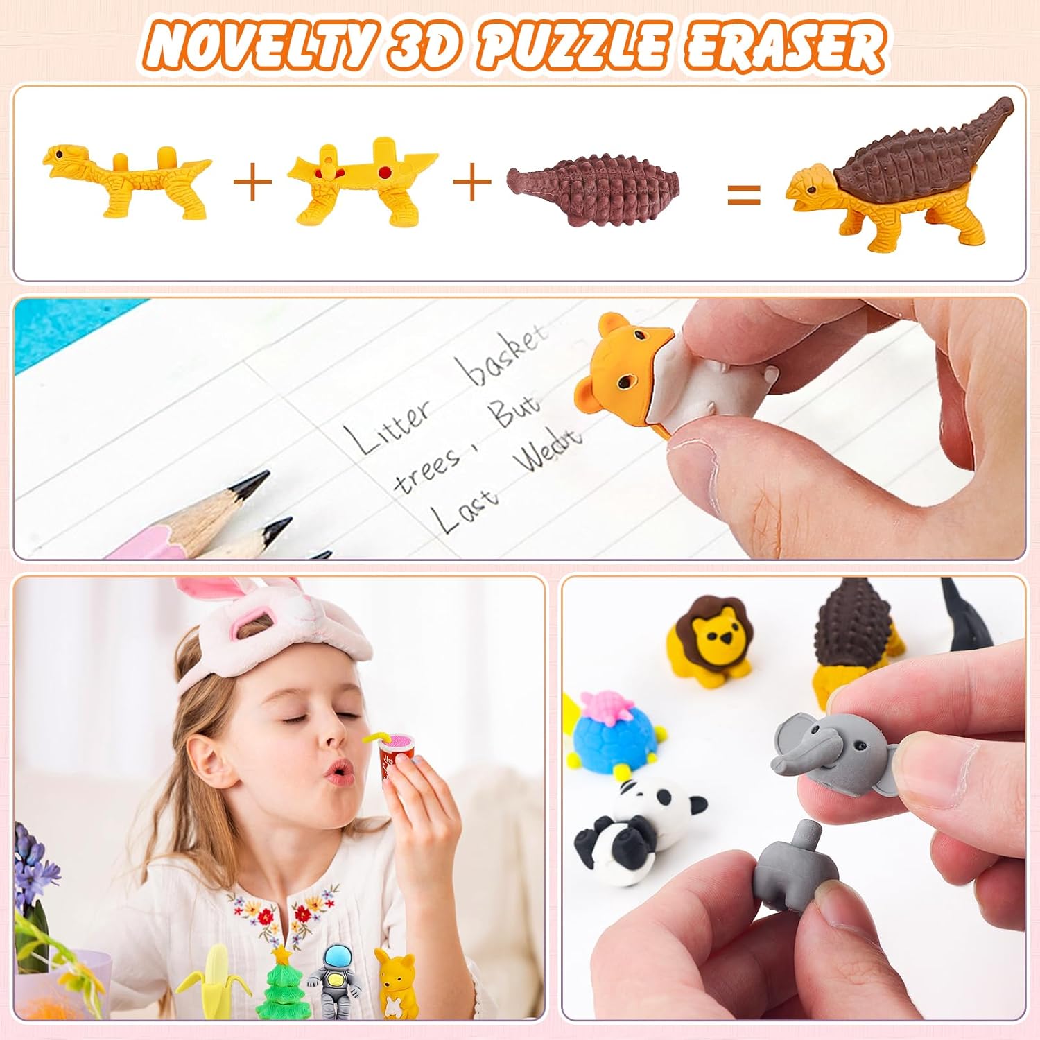 - ENDLESS PLAY & LEARNING:These takeapart erasers aren’t just stationery – they’re fun toys in disguise! Kids develop fine motor skills while rebuilding 3D erasers into zoo animals or fantasy creatures. Build a desk pets for kids classroom community by letting students collect and trade eraser pals. Teachers adore using them as mini erasers for kids bulk classroom incentives – whether for homework rewards or calming fidget tools