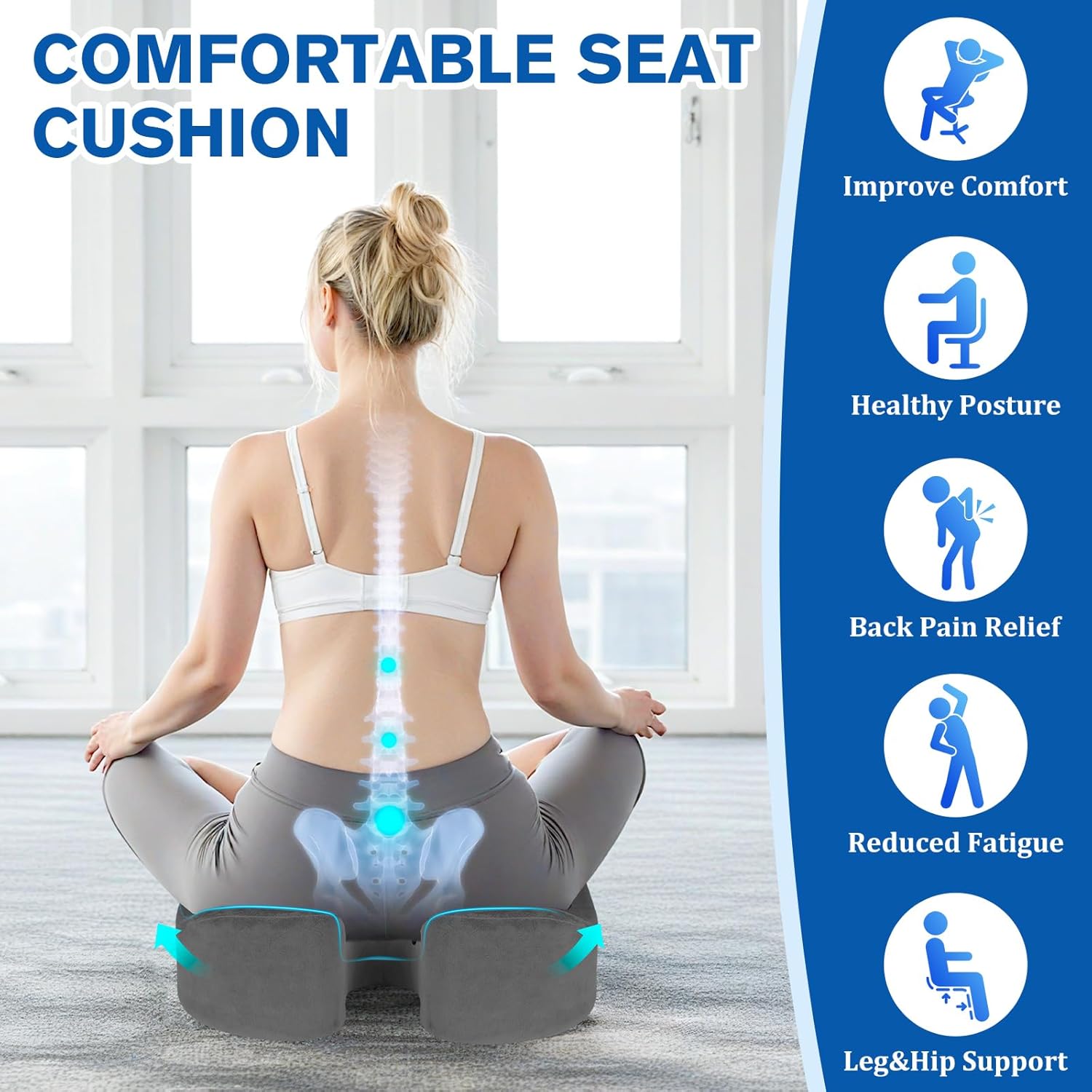 Seat Cushion, Gel Chair Cushions, Office Chair Cushions, Anti-Slip Bottom & Removable Cover Tailbone Pain Relief Cushion, Memory Foam Seat Cushion for Office, Wheelchair, Car (Grey)