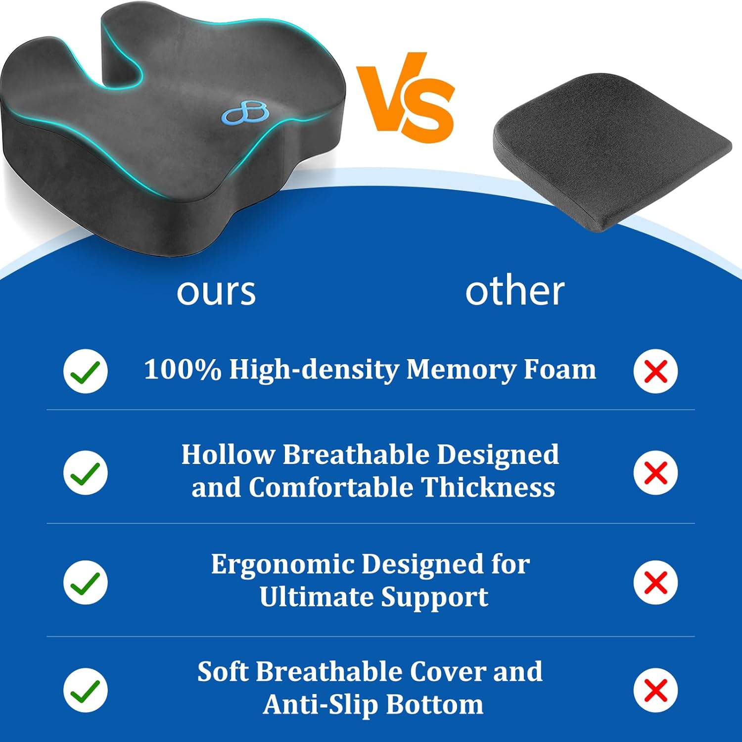 - Premium Gel Memory Foam: The high-quality cold gel memory foam allows you to sit even for long periods of time without feeling hot or uncomfortable, and when the cushion is not pressed by an external force it can bounce back to its original shape after a few seconds
