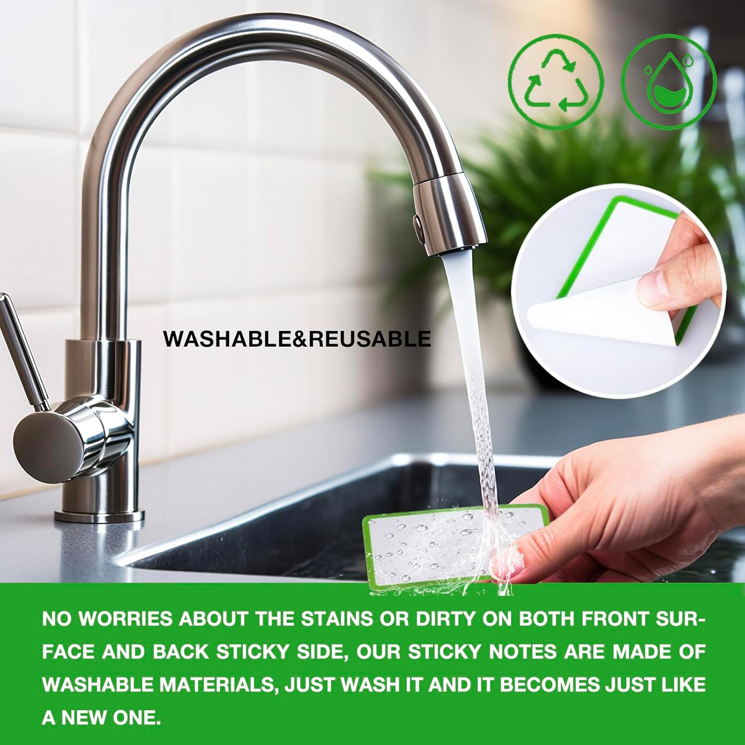 - 💖Reusable Dry Erase Labels: dry erase sticky labels are made of Freon-free Nano Material and dry erase film, smooth writing and wipe off easily, no wear in use and easy to clean, no glue, no magnetic but can stick well, heat resistant, microwave safe, just WASH to Renew if get dirt or stickless, really reuse again and again