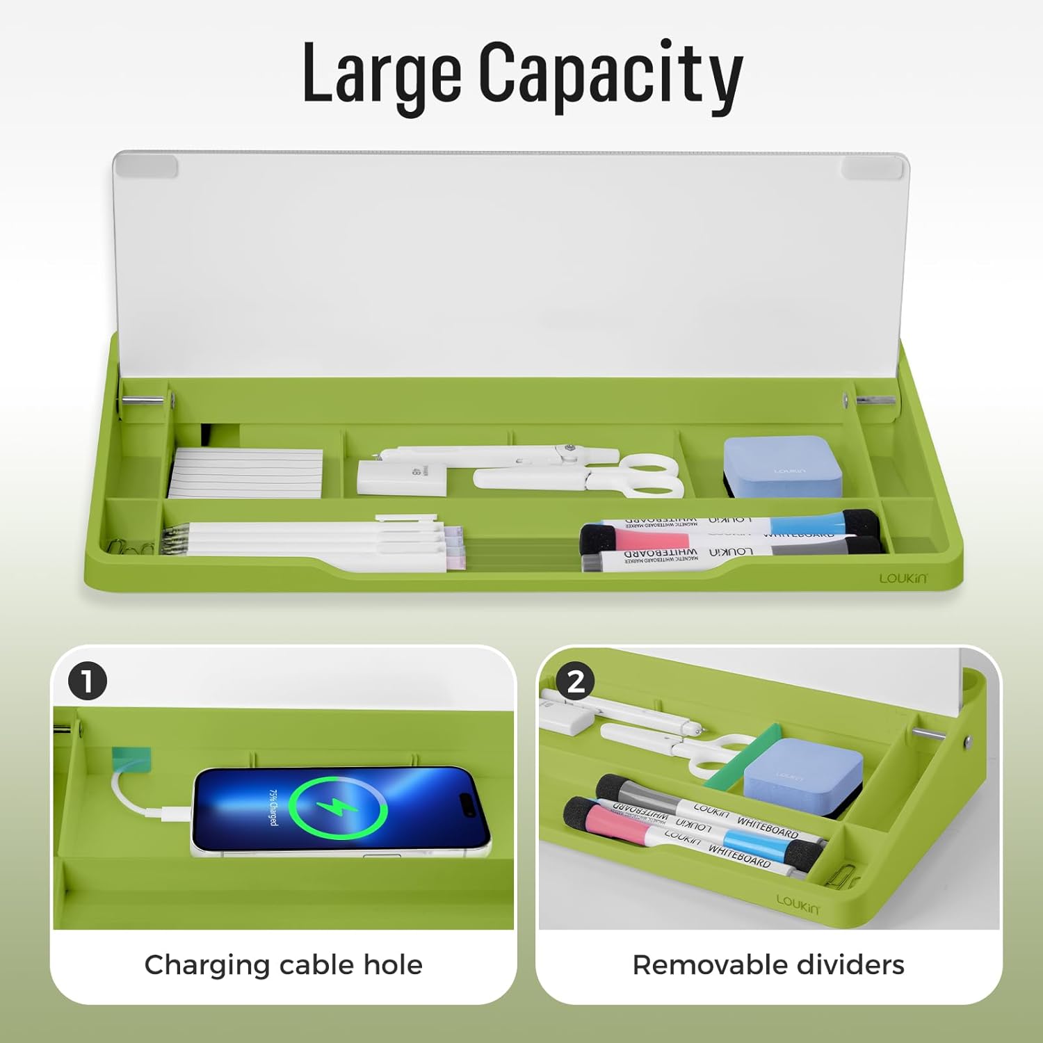 - Multifunction: A combination of writing board, desk organizer, keyboard stand and Pad/phone holder. Includes a charging cable hole on the back side of the product