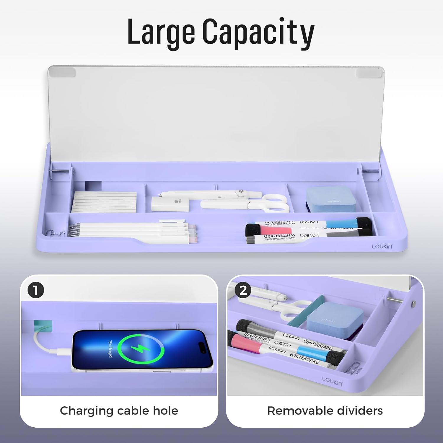 - Multifunction: A combination of writing board, desk organizer, keyboard stand and Pad/phone holder. Includes a charging cable hole on the back side of the product