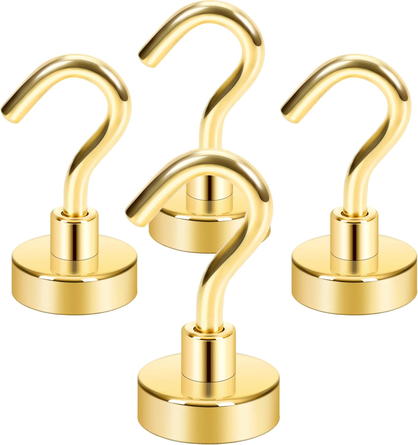 Neosmuk Magnetic Hooks,Heavy Duty Earth Magnets with Hook for Refrigerator, Extra Strong Cruise Hook for Hanging, Magnetic Hanger for Cabins, Grill (Gold, Pack of 4)