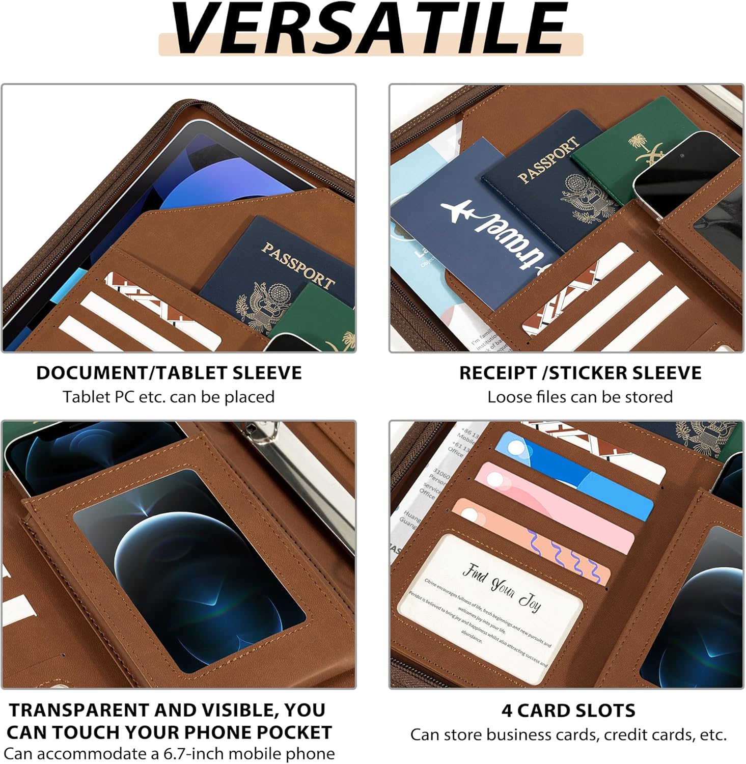 - Portable Leather Clipboard Organizer: Portable & Stable Writing Surface! Features a low-profile arc clipboard for firm hold. Expands flat (22.5"x13.5") for comfortable writing, then folds compact (11"x1.5"x13.5") to fit in bags. The secure zipper closure keeps contents safe and protected on the move.