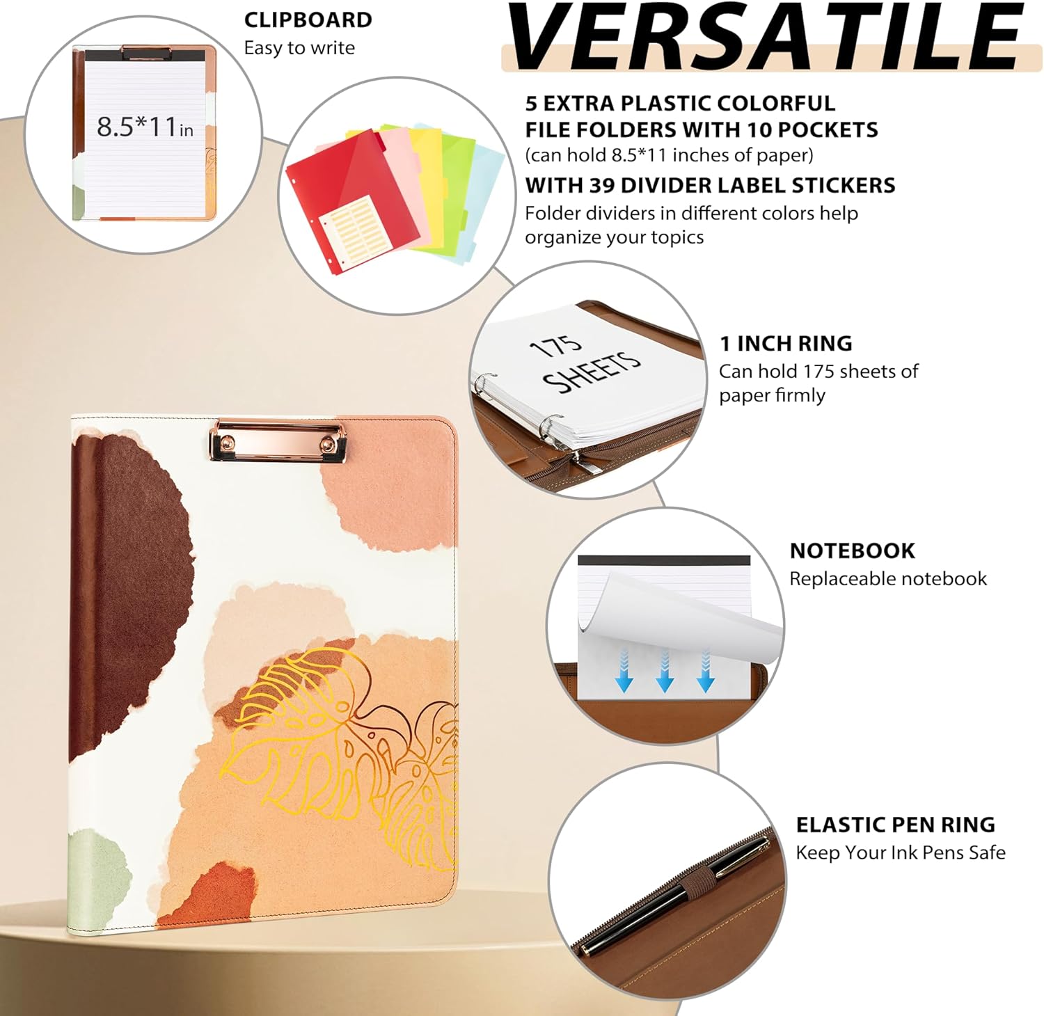 - Multifunctional Clipboard & Organizer Portfolio: Clipboard, Binder & Secure Storage! Seamlessly combine a sturdy clipboard (holds 80-100 sheets), a 1 inch 3 ring binder (fits 175+ papers), a zippered main compartment, and a dedicated tablet sleeve in one sleek leather portfolio. Never juggle separate tools again - manage documents, notes, devices, and essentials effortlessly