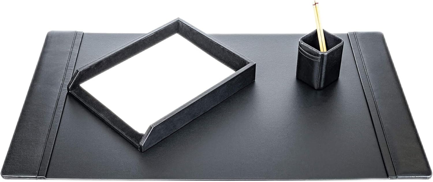 - CONTENTS: This leather desk organizer set includes a 30" x 18" side-rail desk pad, a front-load letter-size tray and a pencil cup.