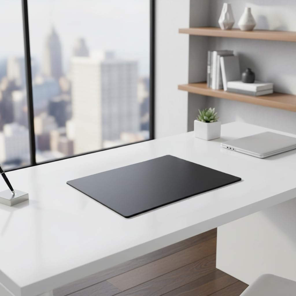 - DIMENSIONS: This black leatherette desk pad measures 24 x 19 x 0.25