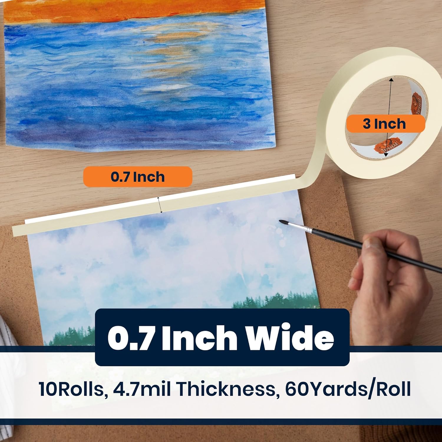 General Purpose Masking Tape 0.7 Inches x 60 Yards, Beige White Painters Tape for Painting, Labeling, DIY Arts Crafts, Home Office School Projects, 10 Rolls