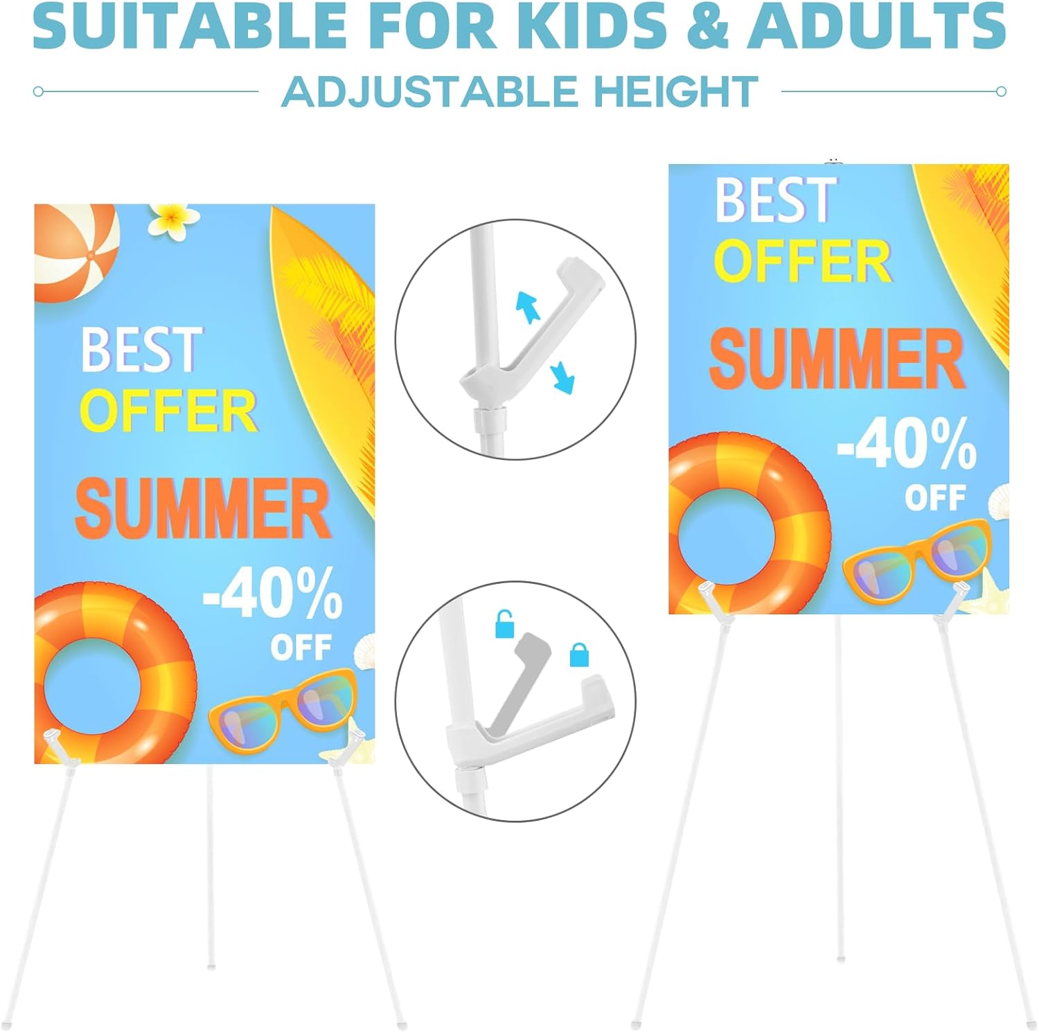 - ADJUSTABLE & ADAPTABILITY : The height of the easels for display can be adjusted as you like, thus SUITABLE FOR ADULTS & KIDS. Just slide the adjustable plastic clip and lock it- done