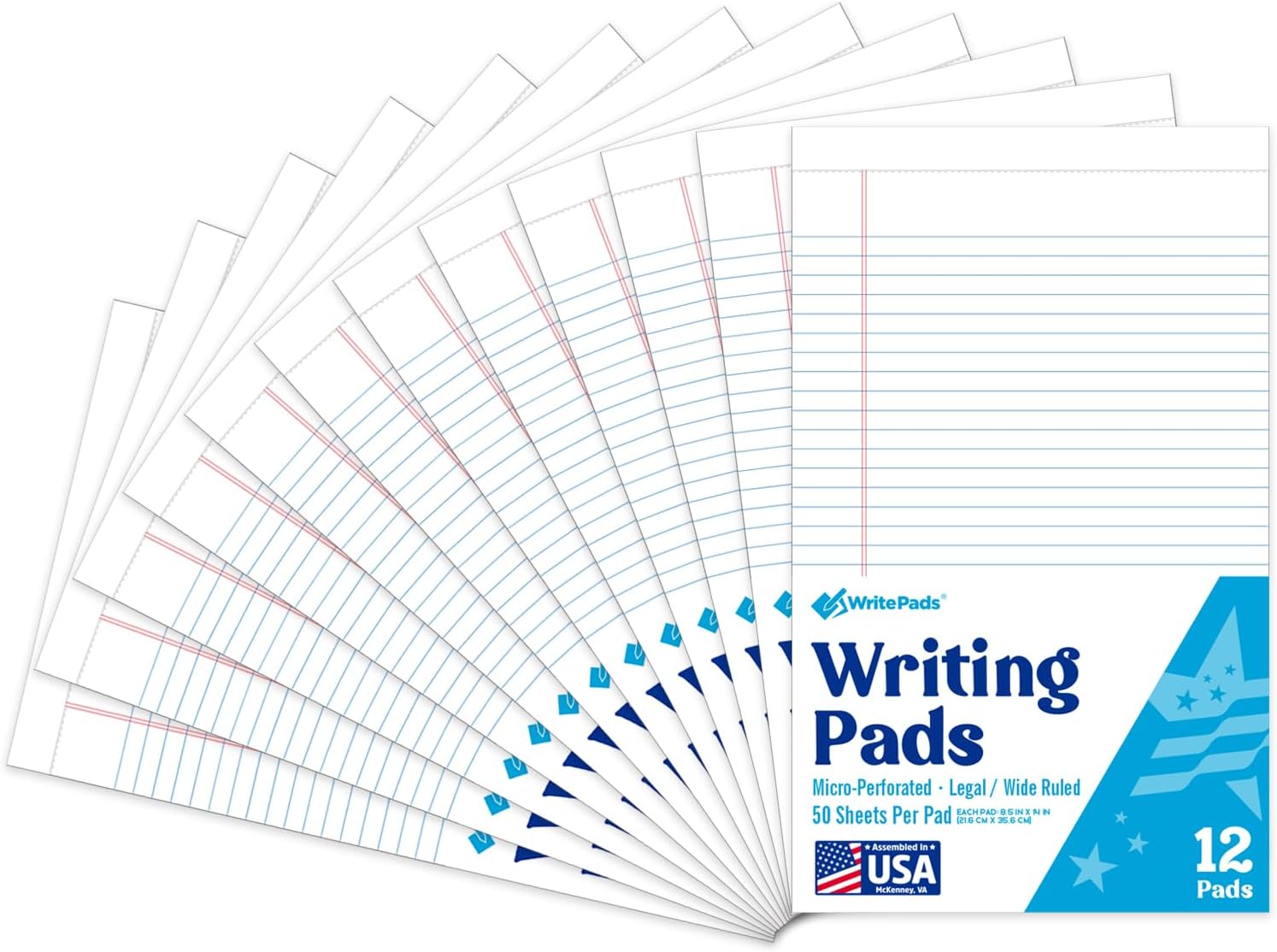 KAISA Legal Pads 8.5x14 inch Large Writing Pads Wide Ruled Notepads Casual Note Pads, White 50 Sheets 12 Pads, WT-LWT50W