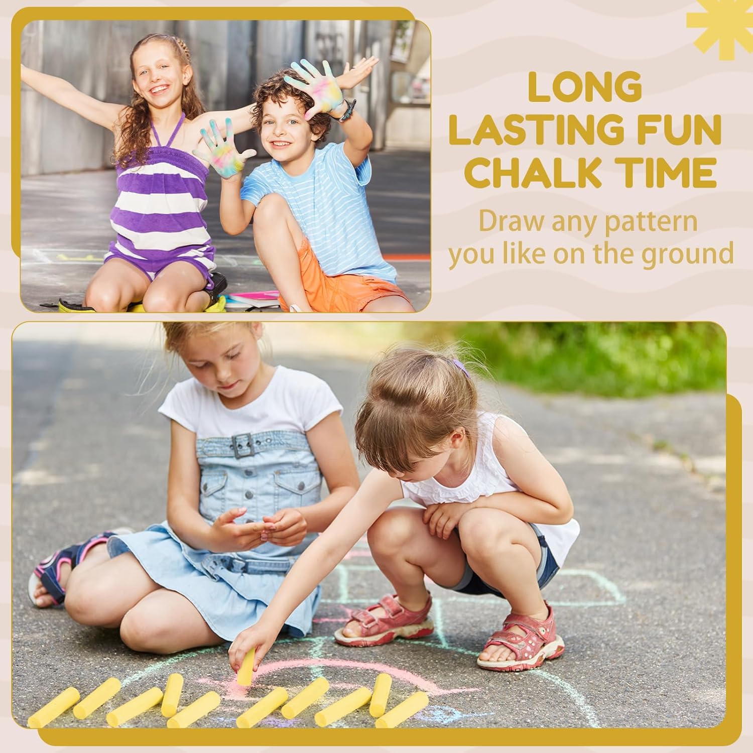 Fulmoon 40 Pcs Jumbo Sidewalk Chalk for Kids Outdoor Art Non Toxic Large Washable Street Chalk for Adults Drawing Painting Classroom(Yellow,Round Style)