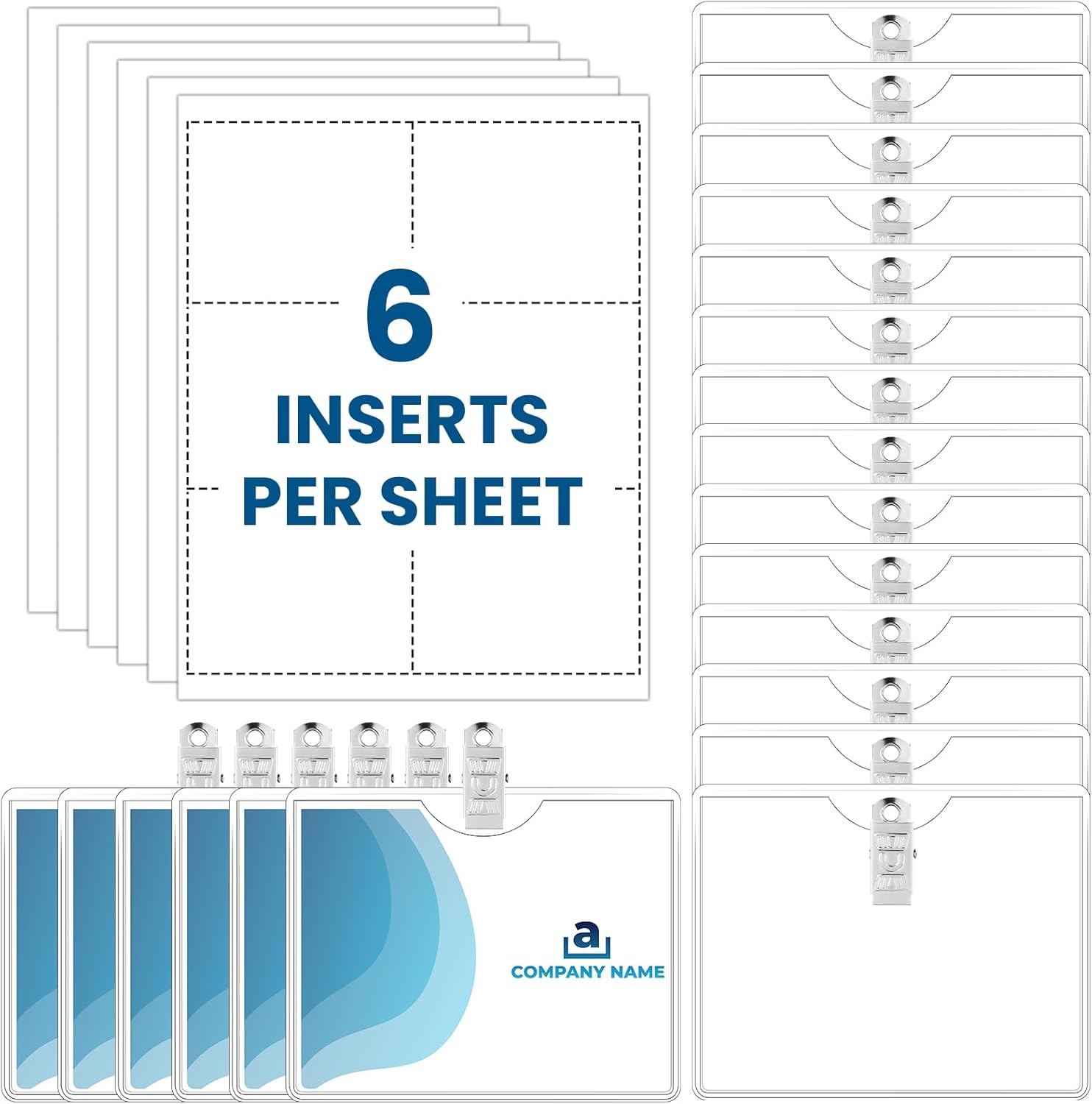- What You Will Receive: package includes 50 pieces of name tag holders with clip, with 9 sheets of printable paper, each paper contains 6 pieces of printable inserts, 54 inserts in total; Sufficient quantity to meet your daily uses and replacements, and you can share them with others