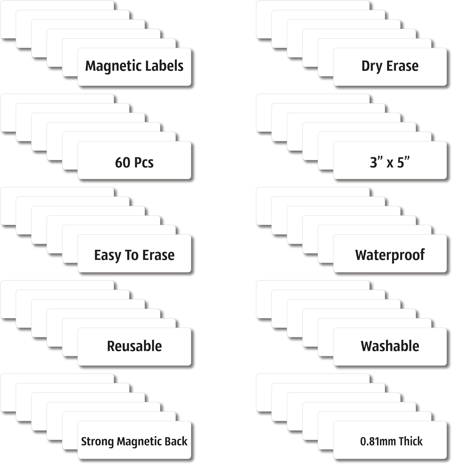 Magnetic Dry Erase Magnets Labels 3x1 inches, Reusable Name Tags, Organizing Schedules in Office/Classroom. Work on Fridge/White Board (White 60Pcs)