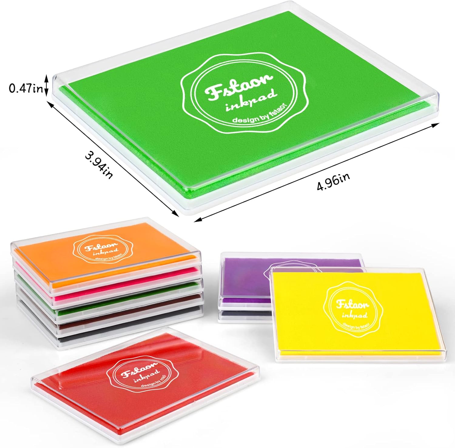 Fstaor Permanent Large Green Ink Pad for Rubber Stamps, 5x4 inch Stamp Pads for Kids Paper Wood Fabric (Green)
