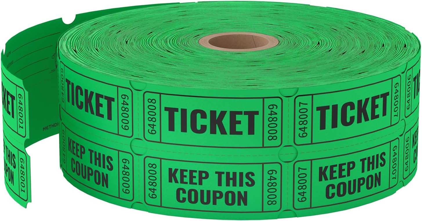 2000 Methdic Green Raffle Tickets (4 Color Selection), Double Roll, Ticket for Events, Entry, Class Reward, Fundraiser & Prizes