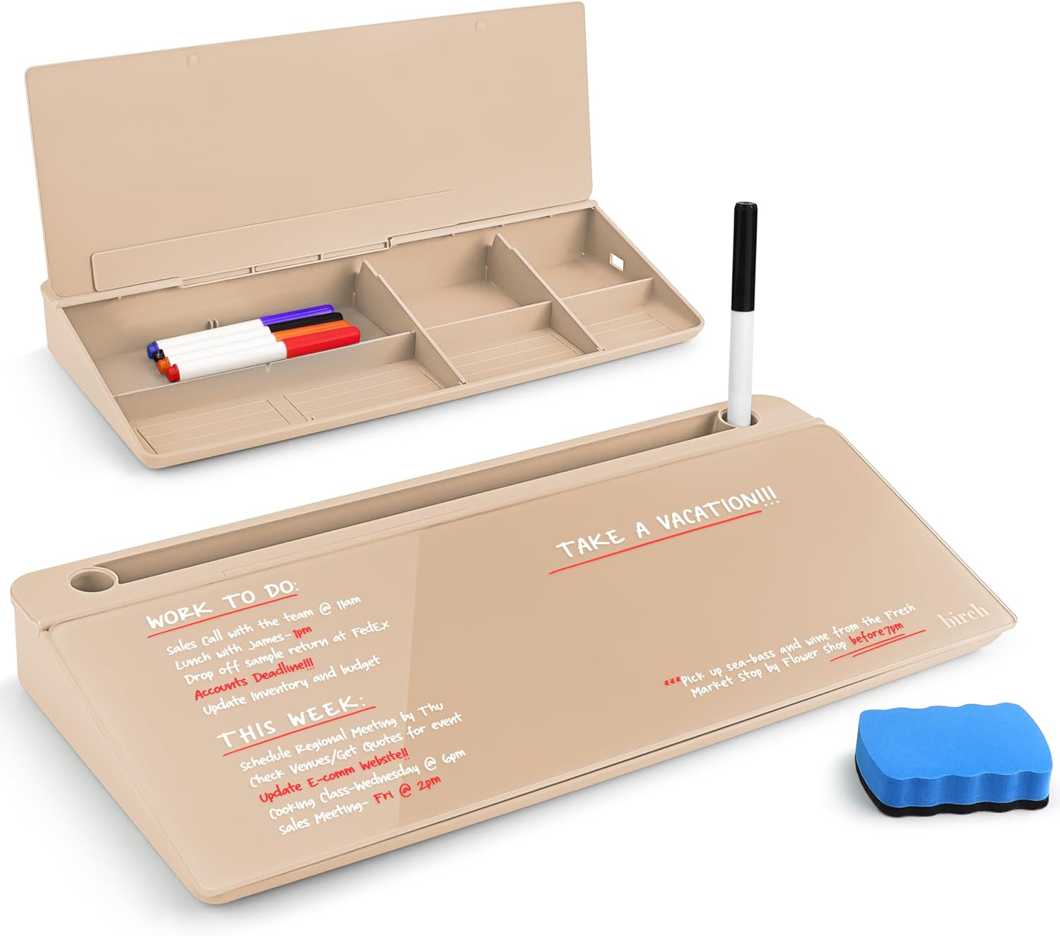 Birch Desktop Whiteboard with Storage & Multiple Marker Surface Desktop Glass Dry Erase Board Desk Top White Board Dry Erase Notepad Desk White Board Tabletop Desk Whiteboard (Sand)