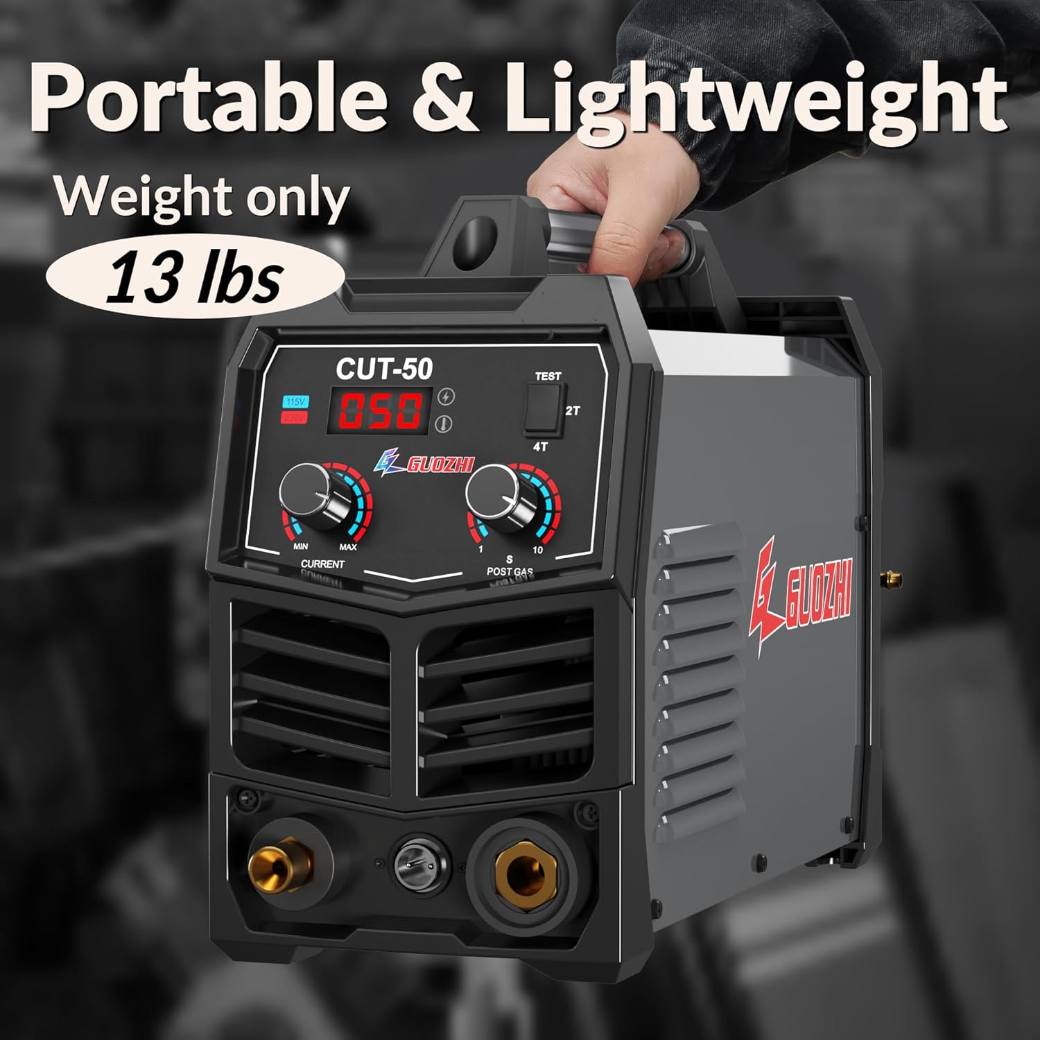 GZ GUOZHI Plasma Cutter, 50 Amp Air Inverter Plasma Cutter, 110V/220V Dual Voltage Digital Display IGBT Inverter Plasma Cutting Machine with 2T/4T/TEST Function