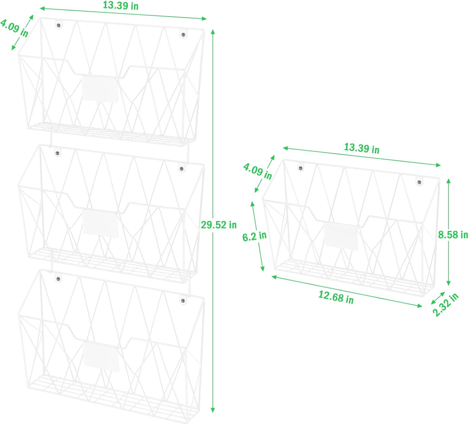- 【Mail Holder Wall Mount】The hanging metal file holder has 3 separate wall baskets, which are great for sorting files, documents, magazines, mail, notebooks, books and so much more. And you also use a wall mail organizer for bathroom and kitchen organization.