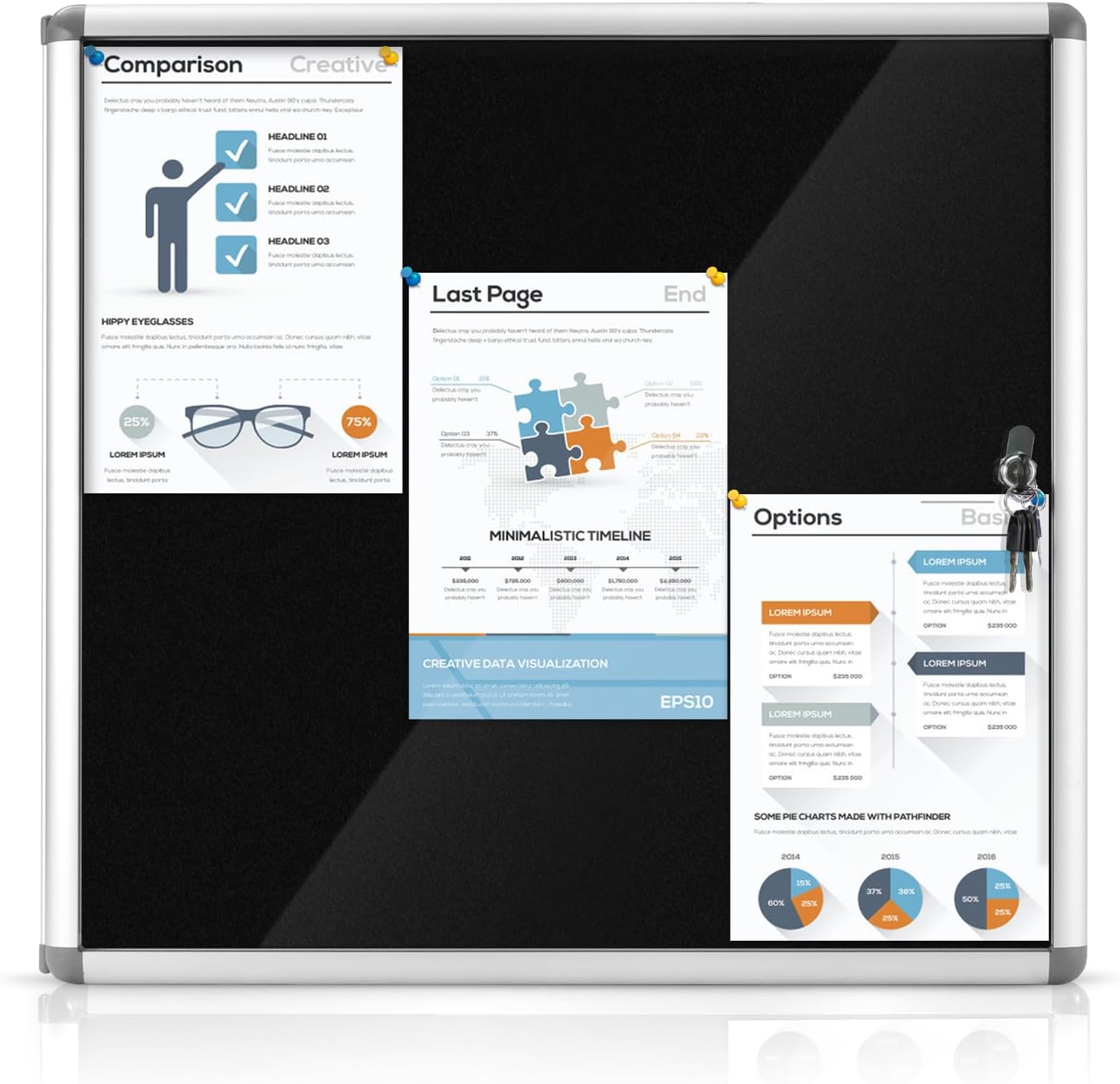- HIGH-QUALITY MATERIAL: It is made of black felt pin board, durable aluminum construction, shatter-resistant acrylic door and ABS rounded corners