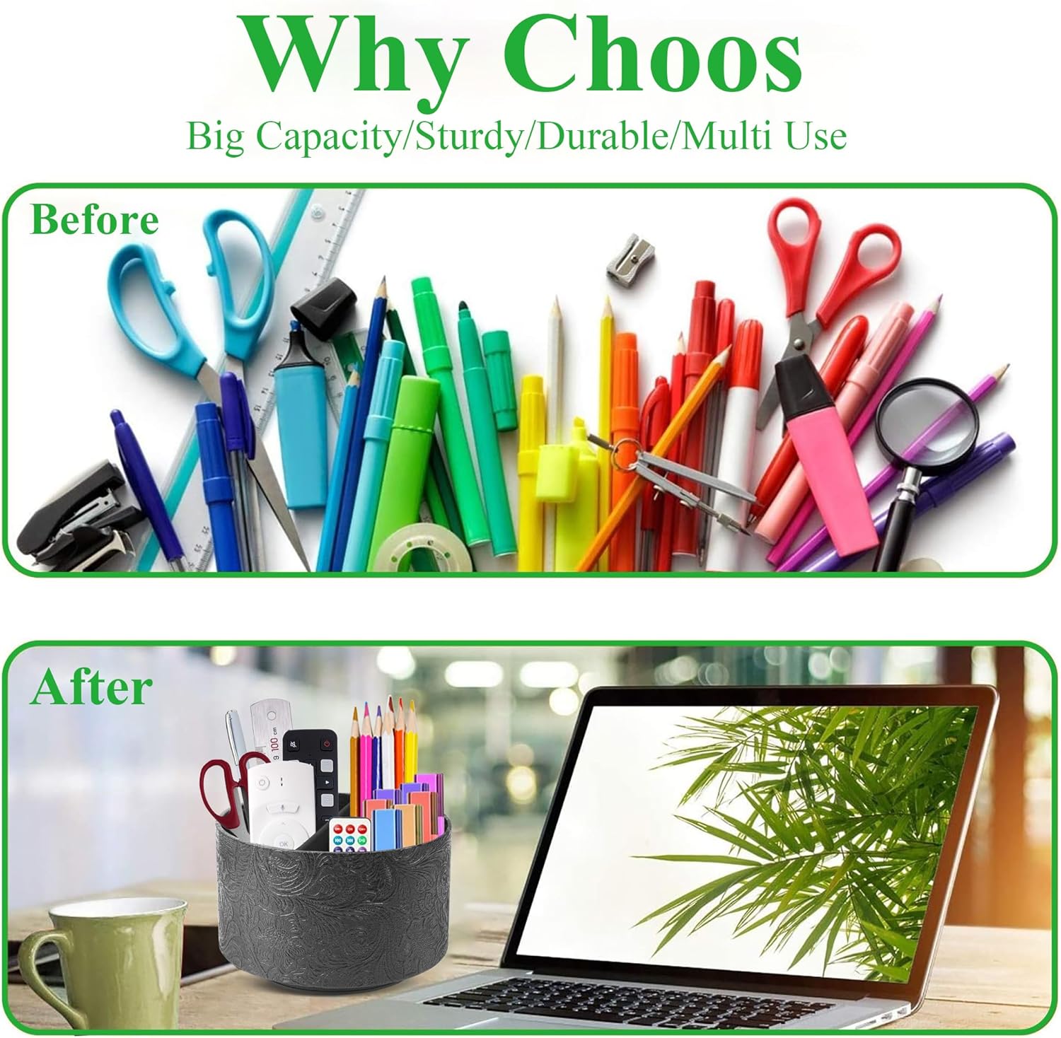 - ✎360° Revolving Design: You can freely rotate the pen holder steadily left and right,unique spinning base design allows easy access to items from any directions.The non-slip pads on the bottom keep it stay in place when rotating.