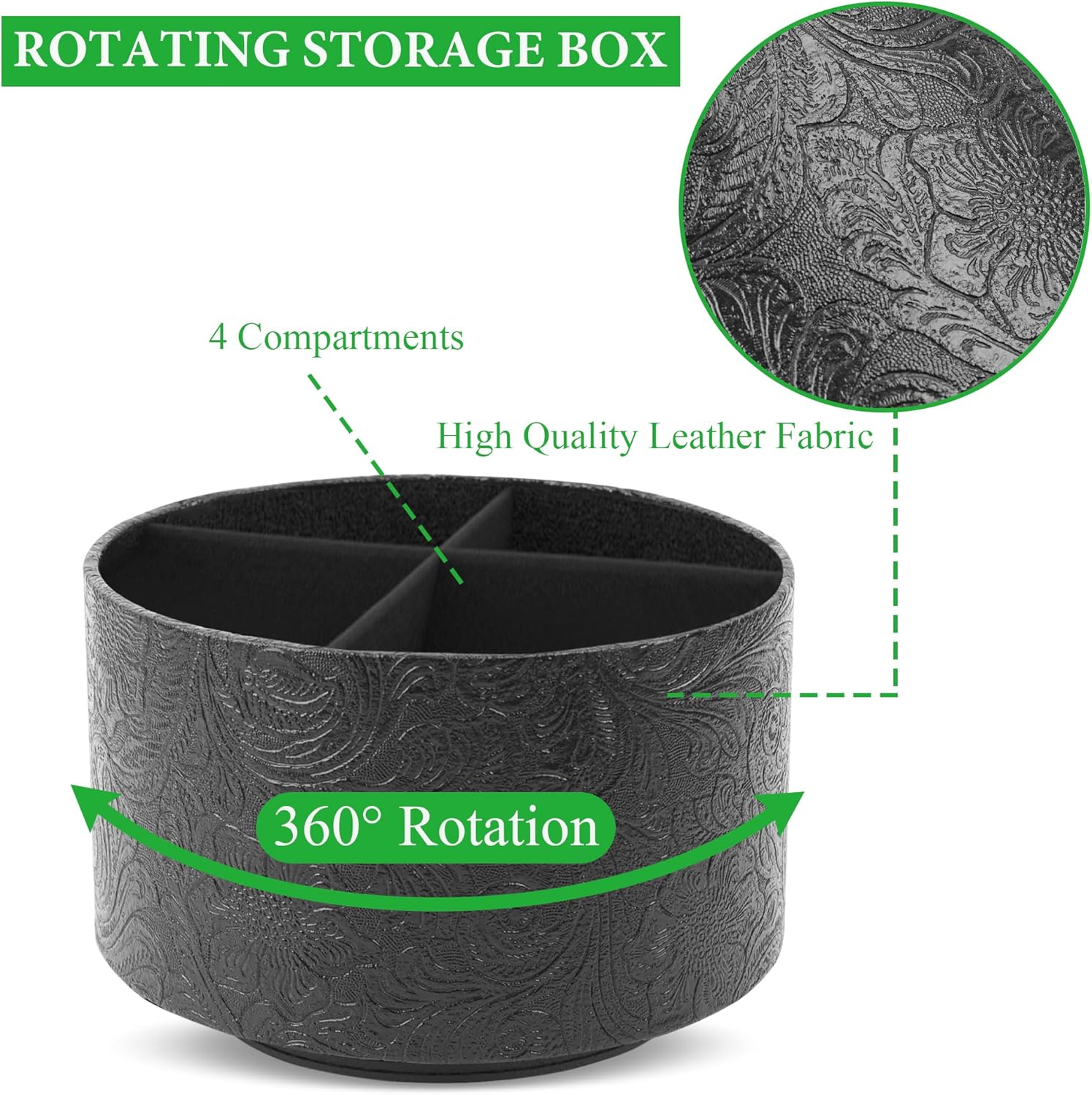 lizimandu Round Leather Art Supply Organizer,Remote Control Holder,360 Degree Spinning,Multi-Functional Pencil Holder,4 Compartments Desktop Stationary Organizer(1-Black2)