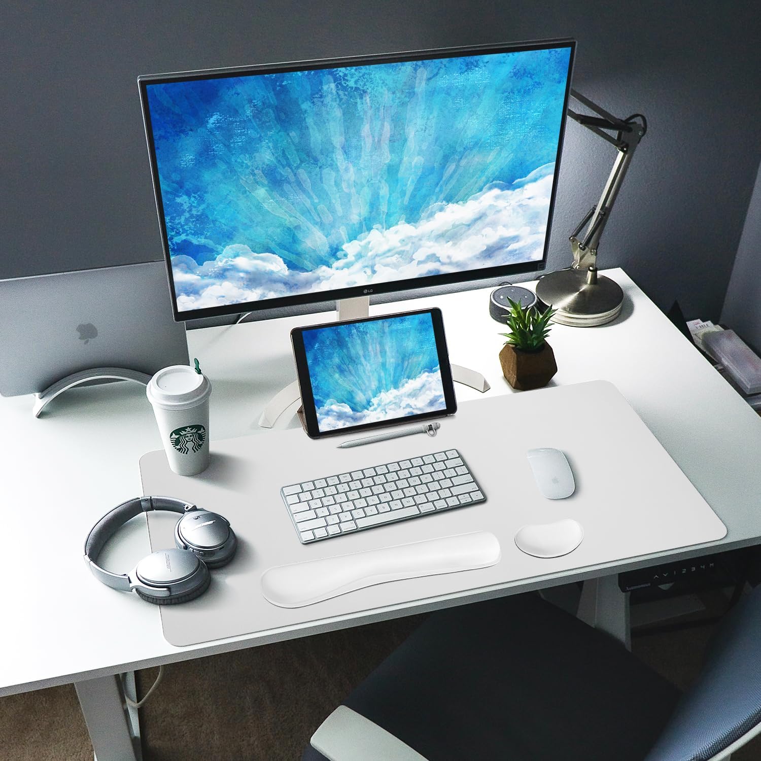 Bloss Leather Desk Pad and Keyboard Wrist Rest, Large Mouse Pad + Keyboard Pad+Mouse Wrist Support, Non-Slip Desk Mat Protector for Office, Home (35.4×15.7 Inches,White)