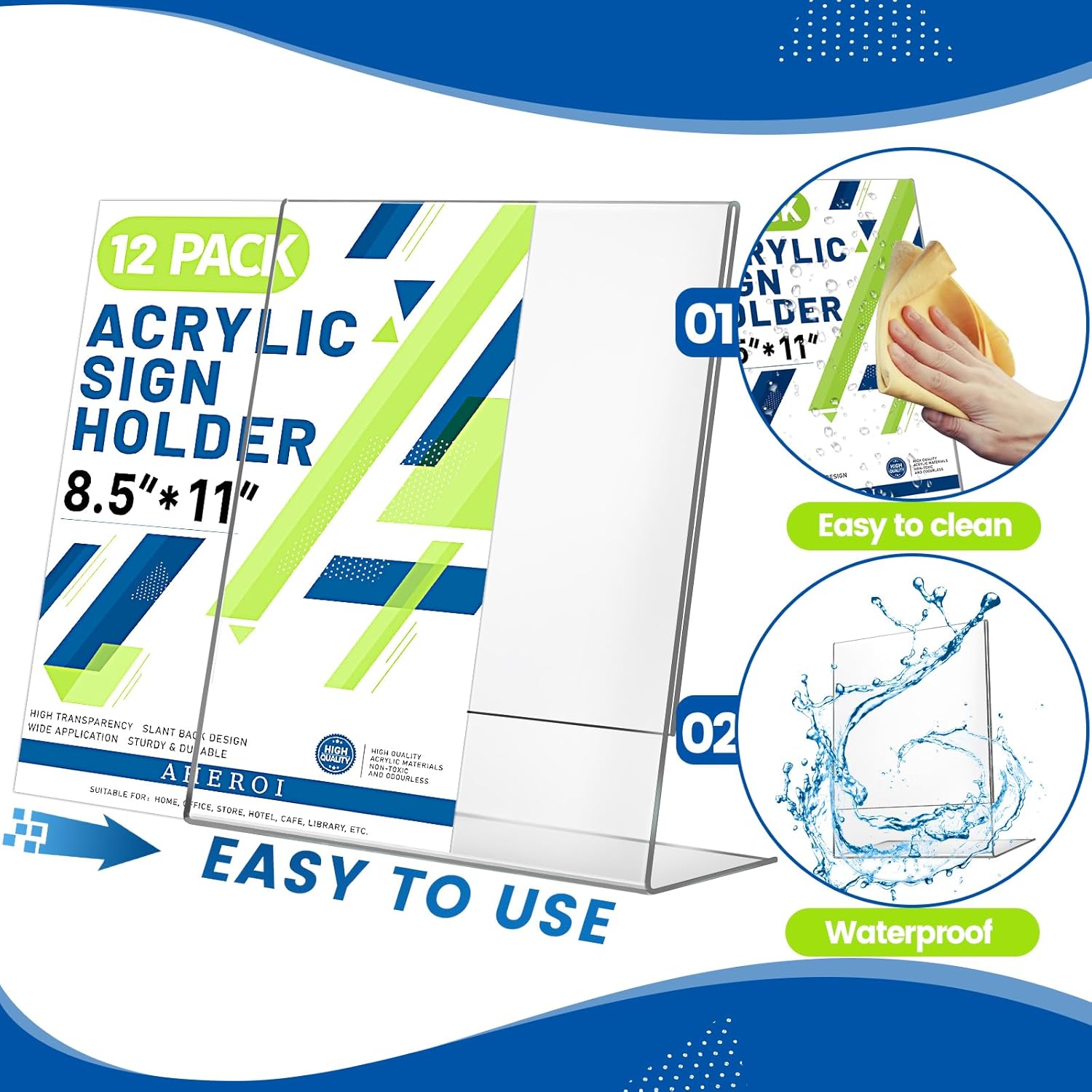 Aheroi 12 PCS Acrylic Sign Display Stands - 8.5 x 11, Clear Plastic Sign Holders for Paper Displays, Home Office Supplies