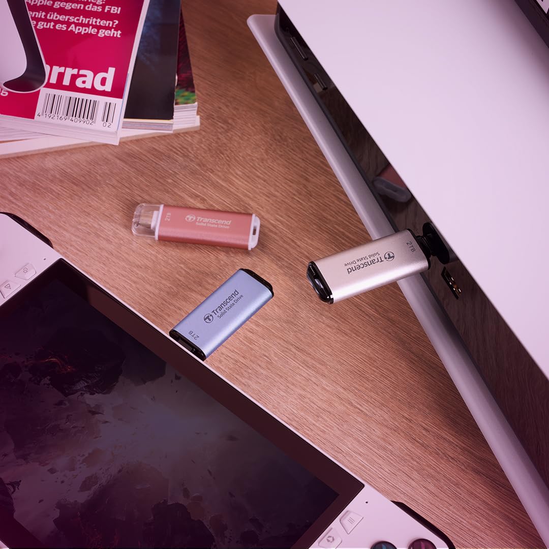 Transcend 2TB External SSD, USB 3.2 Gen2, Up to 1,050MB/s, Portable SSD with Type C, for Steam Deck, ROG Ally, MSI Claw, Windows & Mac, iPhone, iPad, Android, PS5, Xbox, Smart TV, Pink