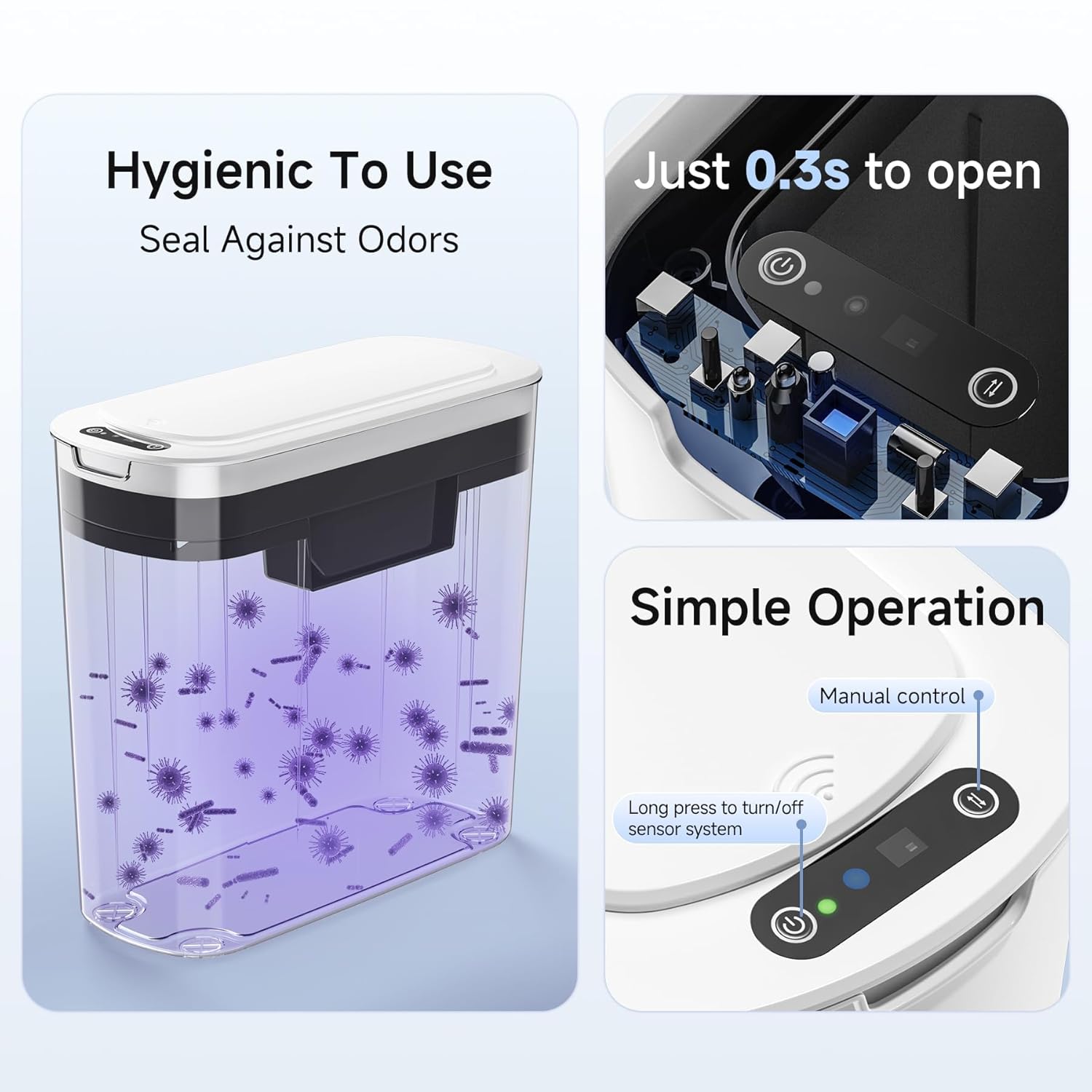 - 【Perfect for Narrow Spaces】The slim design of our smart trash can make it ideal for small spaces, fitting perfectly into corners and narrow areas in office, bedroom and bathroom, etc. Get it now to improve the space utilization!