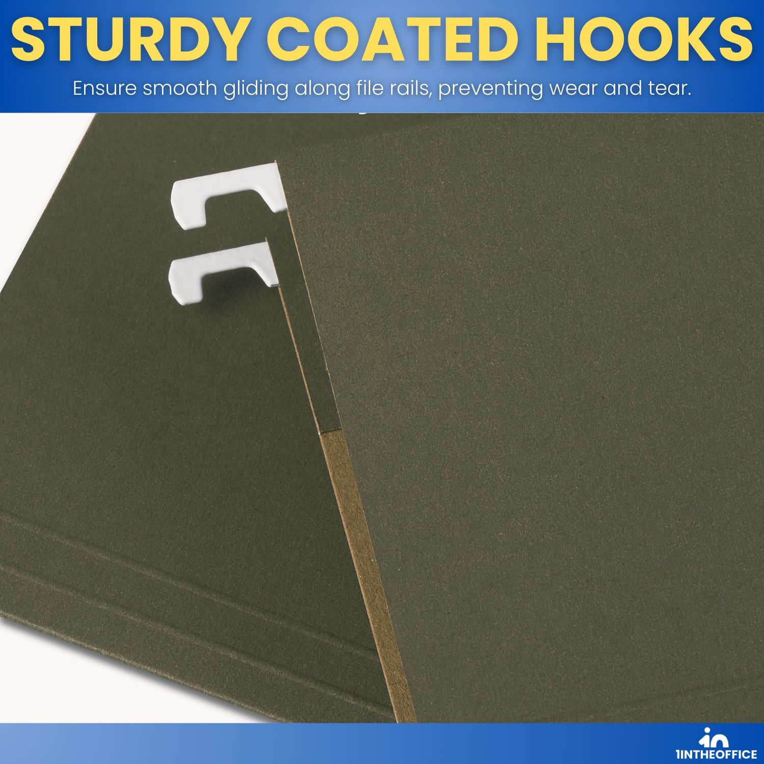 1InTheOffice Green Hanging File Folders Letter Size, Hanging Organizer File Folders, File Cabinet Folders, 1/5 Tabs, 11 pt, 50 Pack