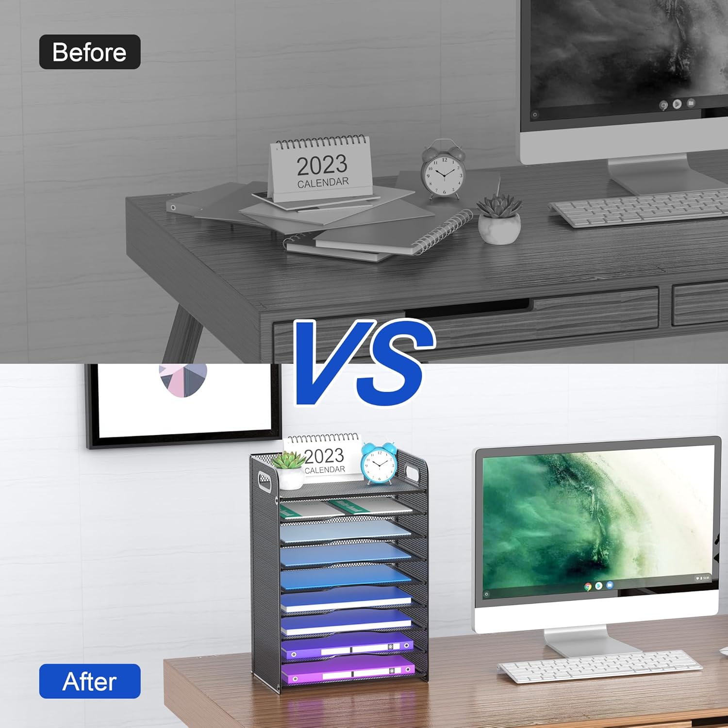 - 【NEW Updated Handle Design】: The desk organizer comes with handles, makes it easier to move.Also the paper tray comes with 2 metal bars to reinforce, which makes it more sturdy and much easier to assemble.