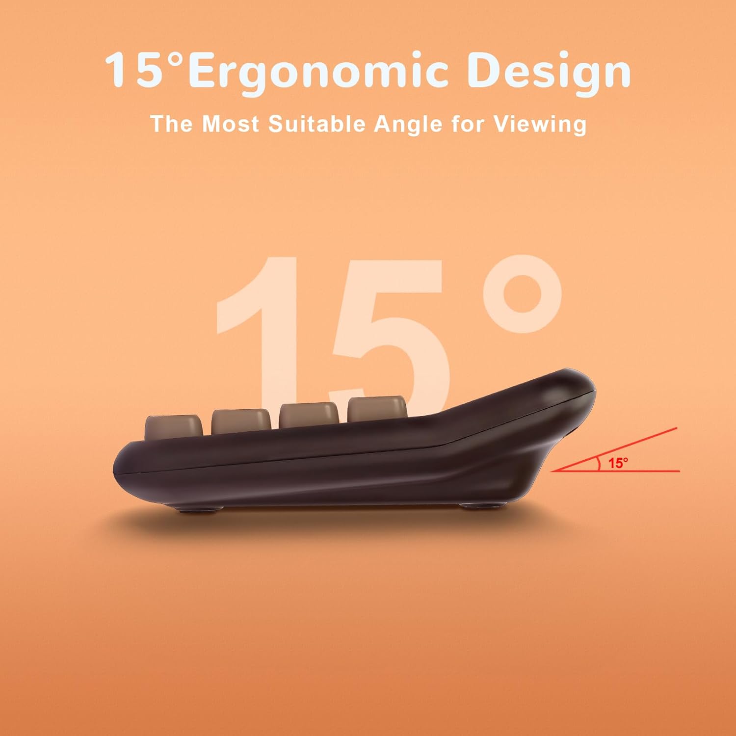 - 【Energy Efficient Design】The basic calculator display is designed with a 15 ° tilt screen for optimum field of view and stability. It is convenient and comfortable to calculate and read. It will automatically shut down after 10 minutes without any operation, saving energy and electricity, kindly note, that this aesthetic calculator package contains one battery.