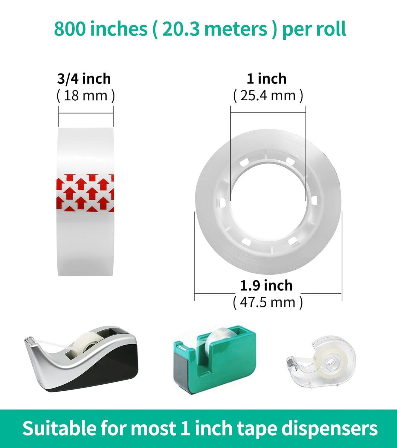 48 Rolls Transparent Tape Refills, Clear Tape Dispenser Refill Rolls, Glossy Gift Wrap Tapes for Office, School, Home, 3/4 x 800 Inches