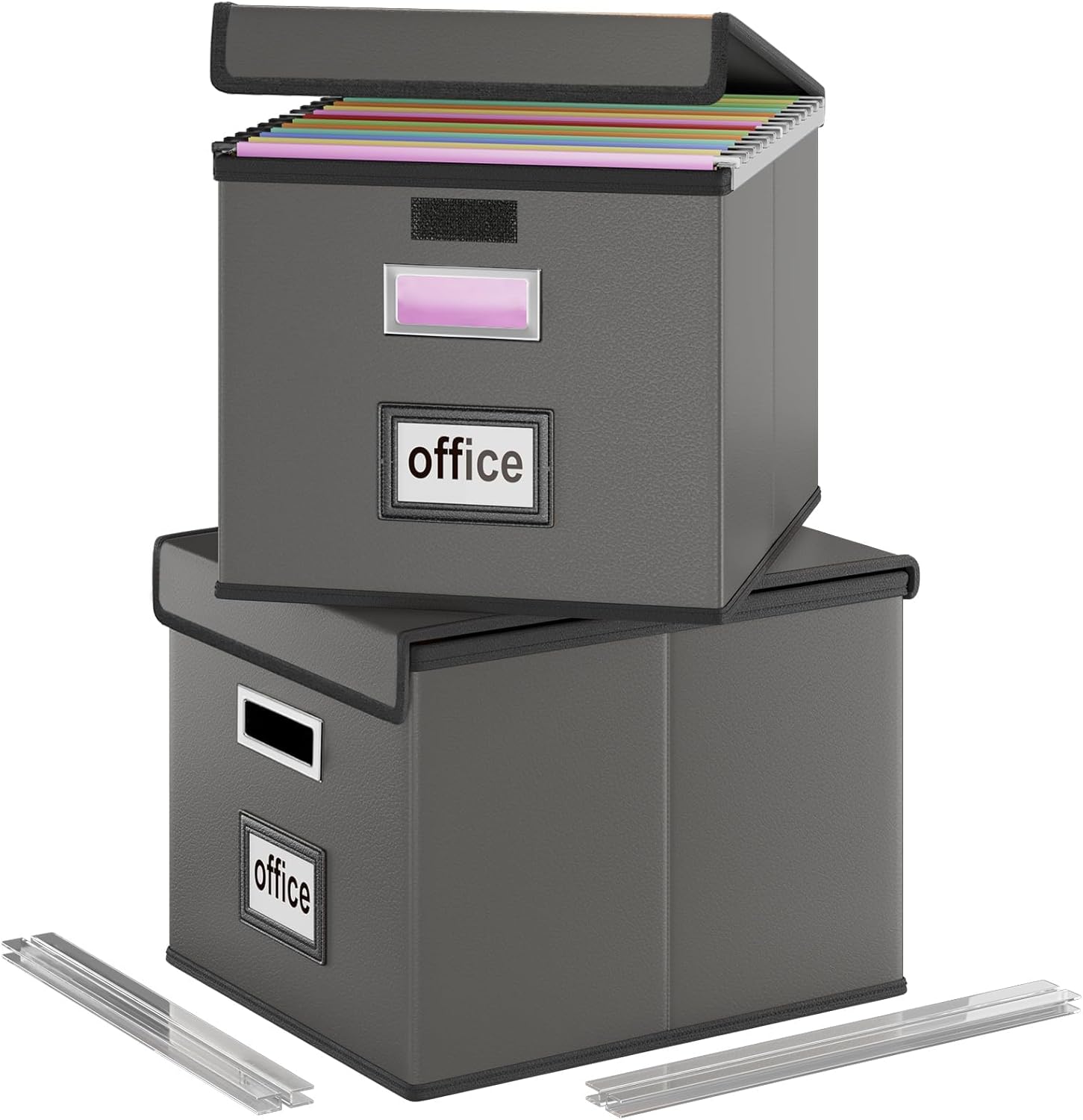 - Unique Functional Design - this file boxes both sides are equipped with practical PVP slide rails, which can not only prevent the two sides of the file storage box from loosening, but also facilitate the sliding of the file folder, which is very suitable for hanging file folders. The metal handles on both sides allow us to easily move the storage box, and the label slot on one side facilitates classification. Functional features and a beautiful design create the best filing box organizer.