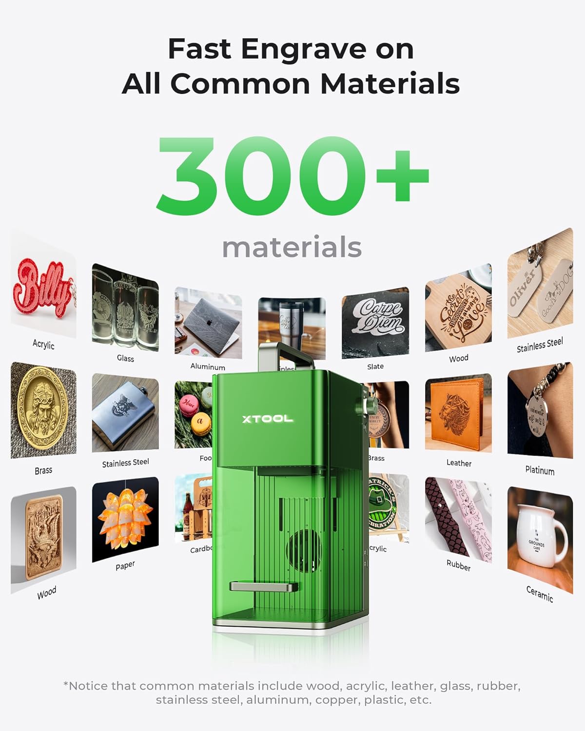 - Dual lasers fit 300+ Materials: The xTool F1 2-in-1 laser engraving machine is the world's first 2W(2000mW) infrared(for all metal materials) and 10W(10000mW) diode laser cutter and engraver machine(for wood, acrylic, etc). This laser engraver can cut 10mm wood and 6mm acrylic. Thus, this laser engraving machine allows you to customize business cards, wood blanks, dog tags, tumbler laser marking, and even do rust removal.