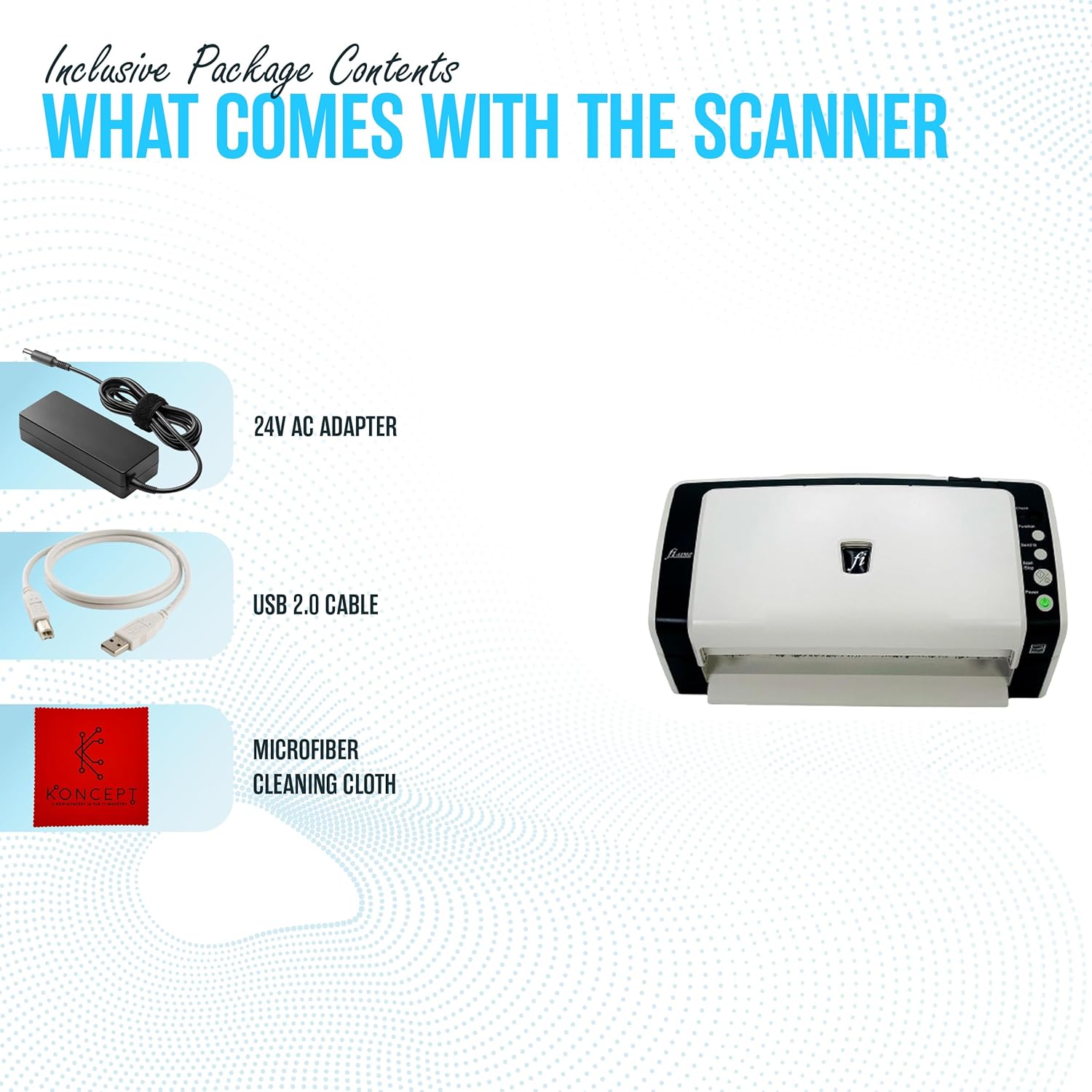 FI-6130 Fujitisu Document Scanner ADF - 1 Year Warranty - Duplex Sheet-Fed Document Scanner with 24V, USB 2.0 Cable & Microfiber Cleaning Cloth (Renewed)