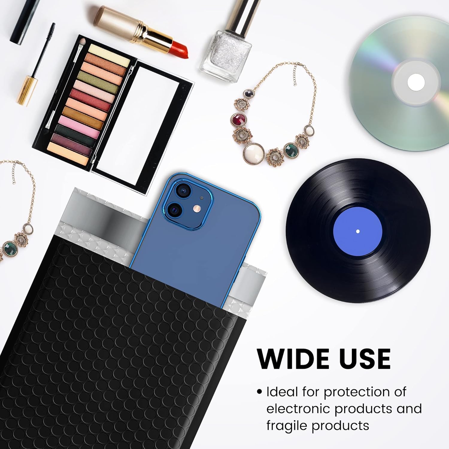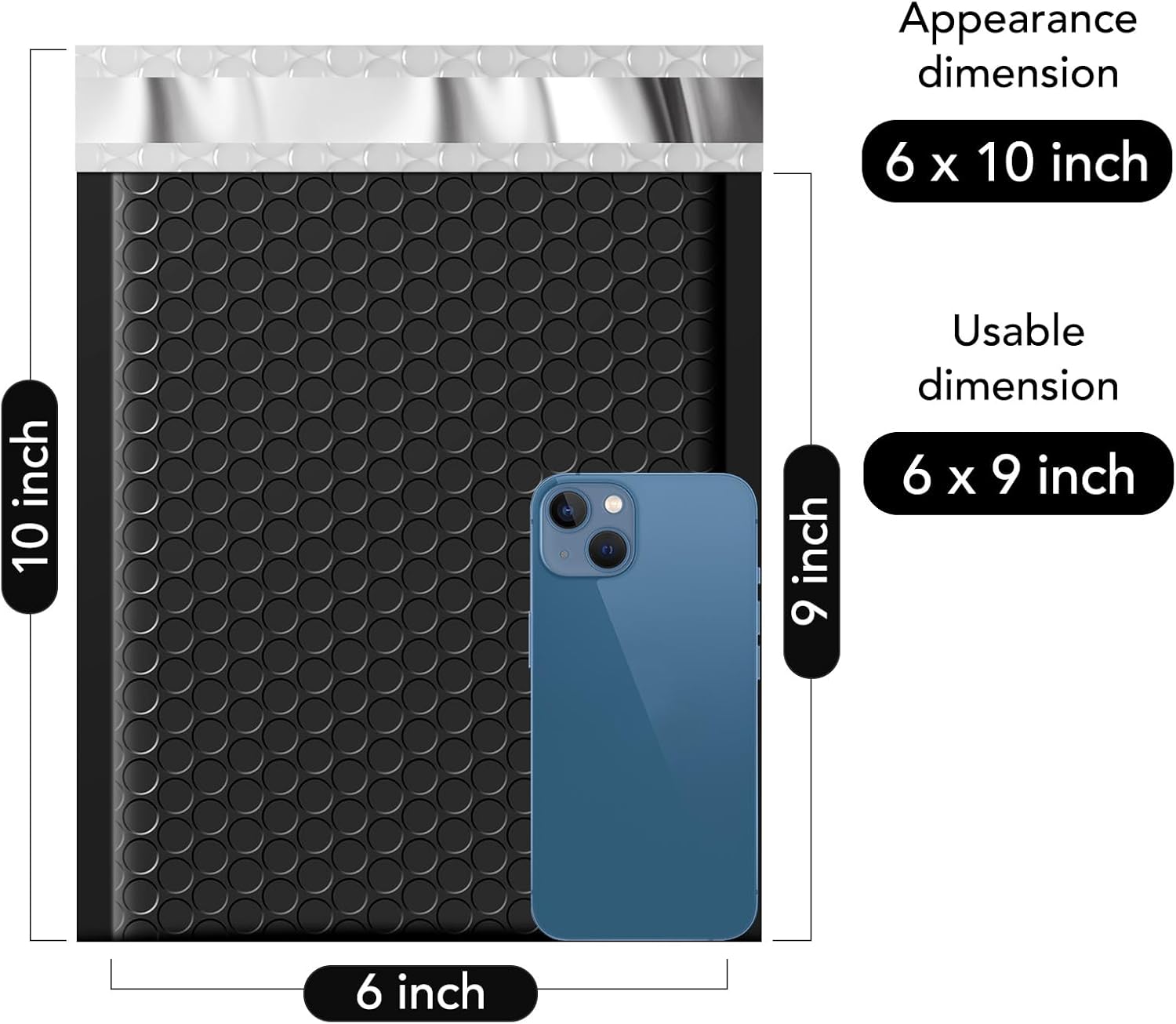 - Perfect Size Bubble Mailer: The poly bubble mailers outer size is 6x10 inch, while the inner size is 6x9 inch. It is very suitable to transport for jewelry, makeup, cards, phone case, Lips, photos, handcraft and more.