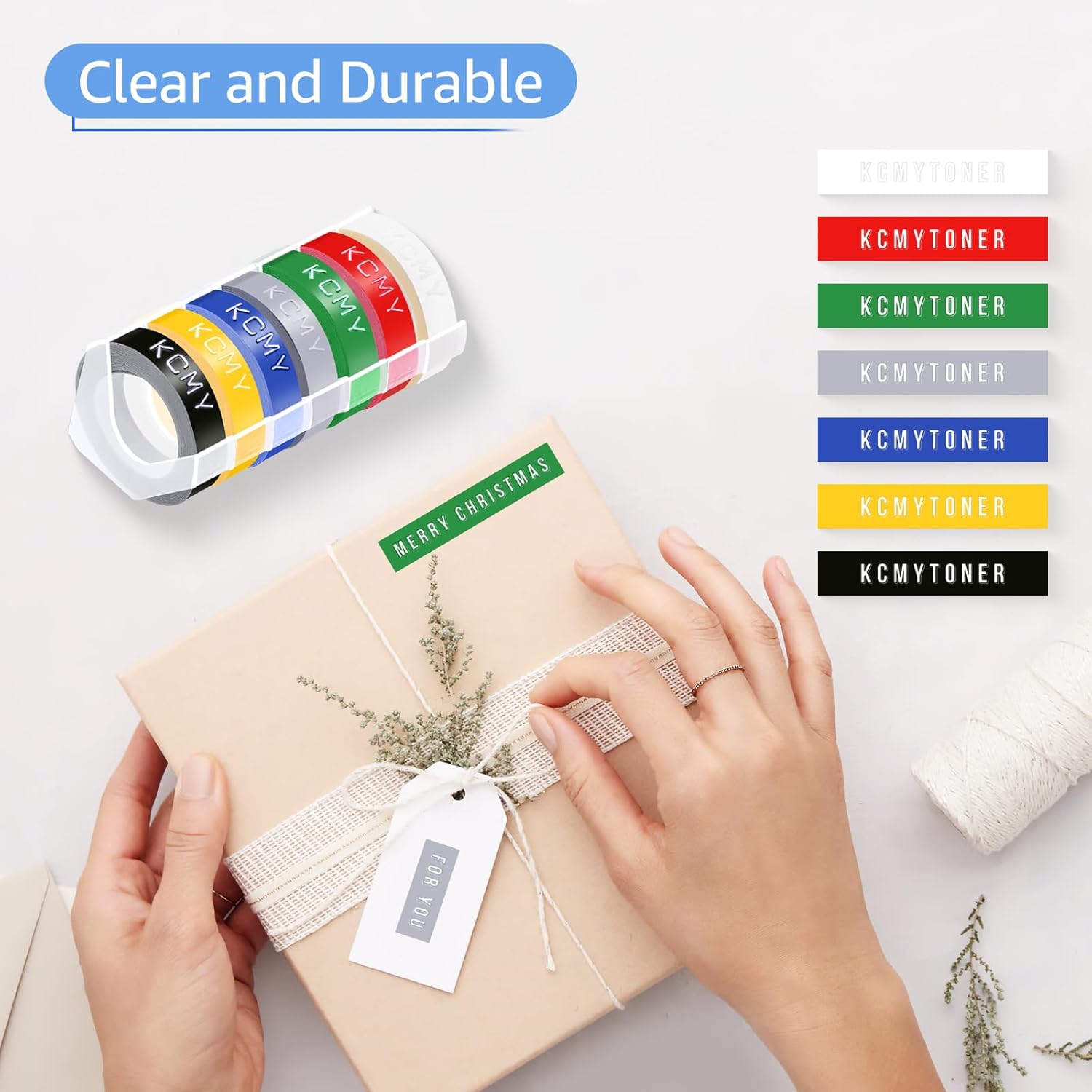 - Product information: KCMYTONER 3D plastic embossing label tapes white print on black compatible for Dymo embossing label makers. Dimension: Width: 1/2" (12mm), Length: 9.8' (3m).