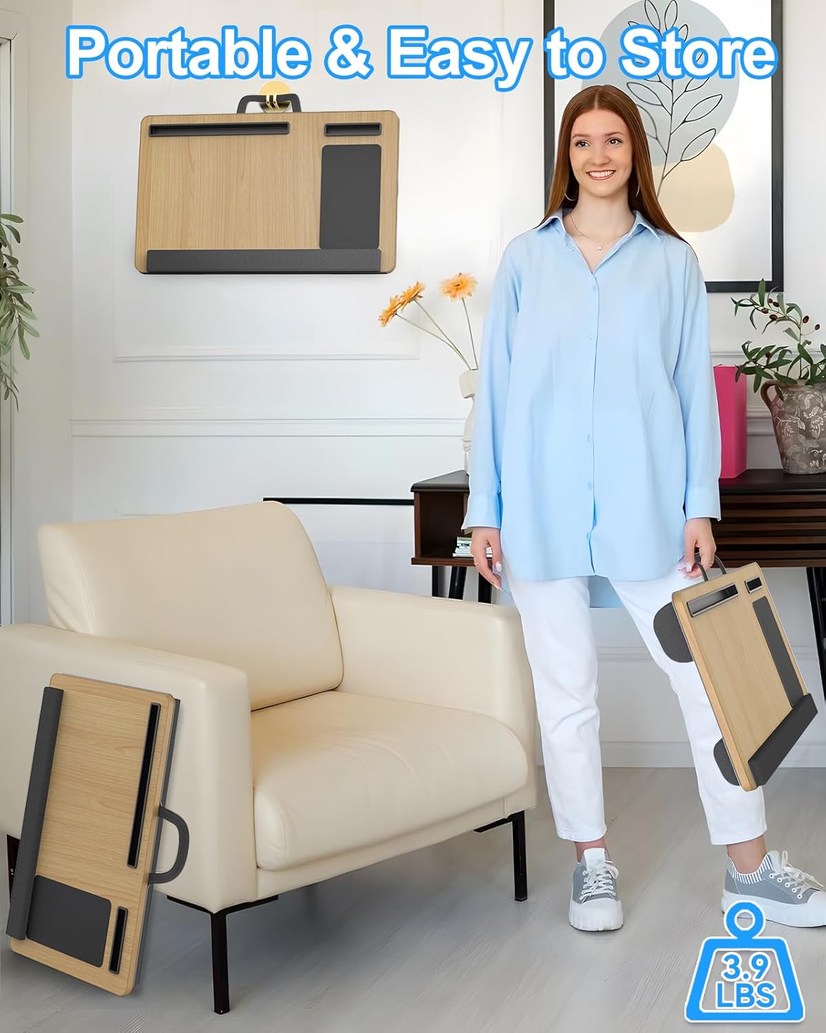 - Portable & Easy to Store : Weight 3.9 pounds. With a portable fabric handle, allowing you to work everywhere outdoors: in the car, on the train, etc. The thickness is only 3 inch to easily store it in multiple places: under the sofa, bed, beside the bed, couch or hanging on the wall.