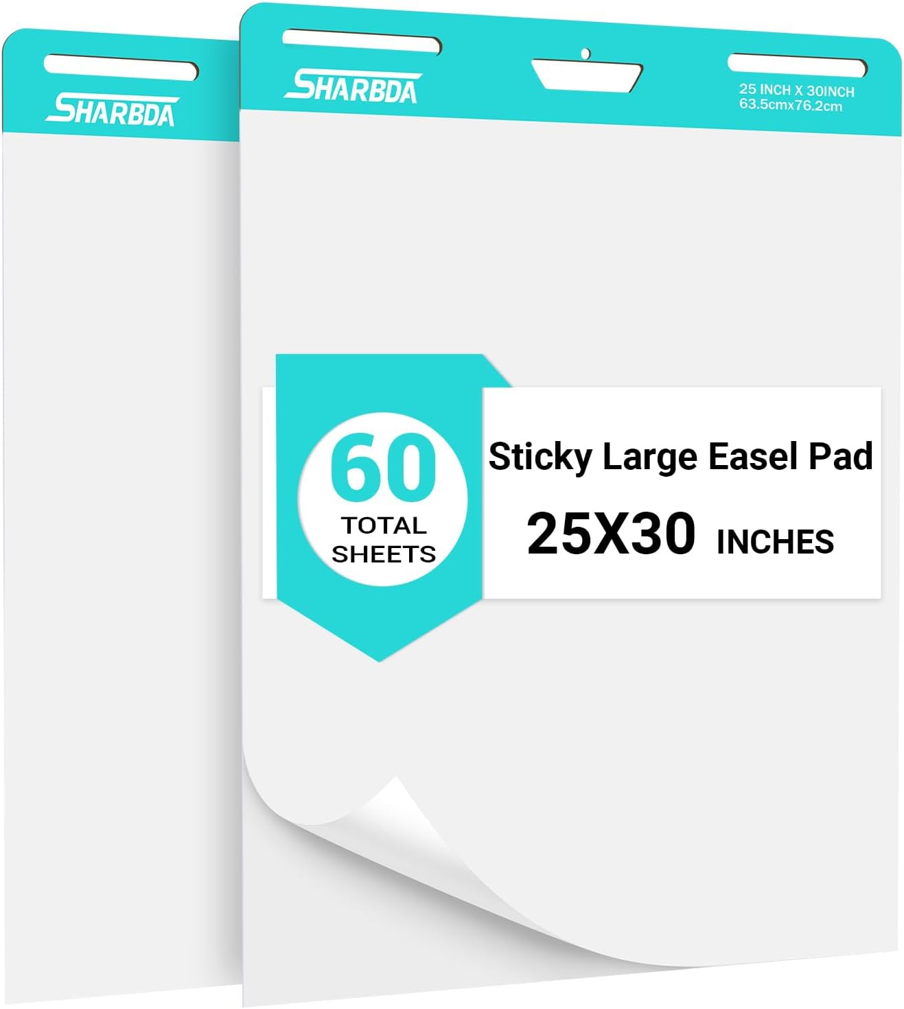 Sticky Easel Pad, 25 in x 30 in,Flip Chart Paper,Sticky Chart Paper for Teachers, Large Self-Stick Easel Paper,Super Sticky & Bleed-Resistant,30 Sheets/Pad,2 Pads