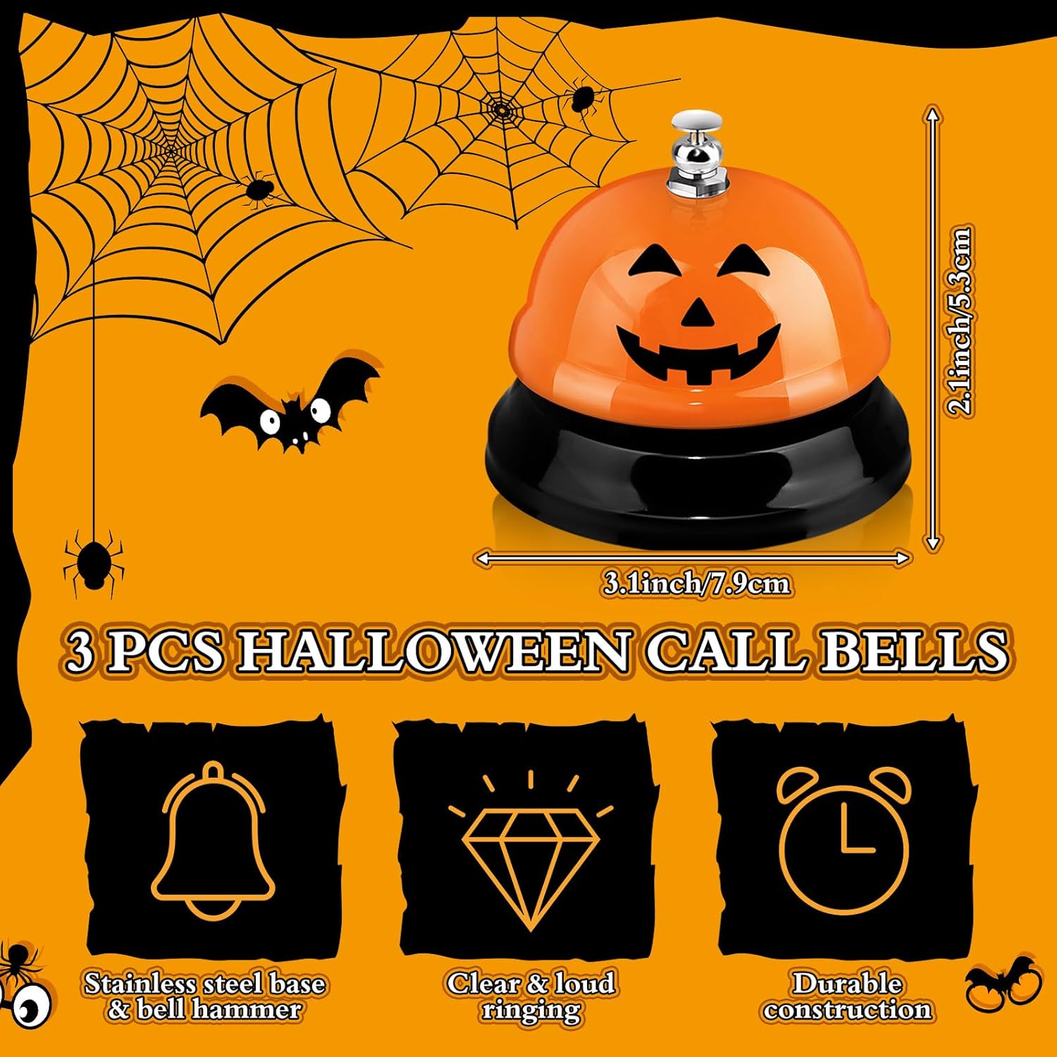 Hotop 3 Pcs Desk Bell for Service Funny Front Desk Smile Face Metal Ringer Call Bell for Kitchen Hotel Restaurant Classroom(Pumpkin, Ghost, Bat,Orange, Black, White)
