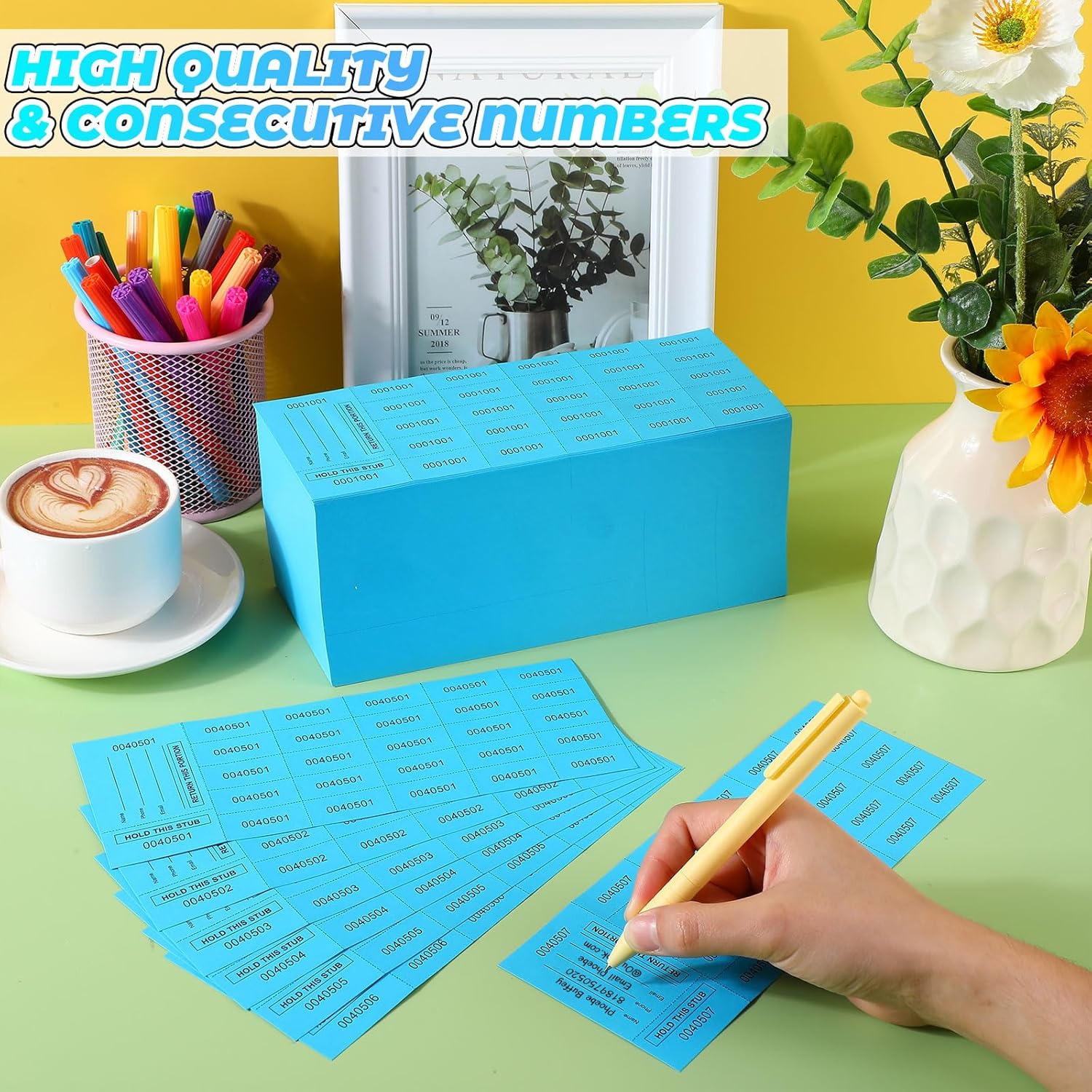 - Sufficient for Auctions: the package contains 1000 sheets of raffle tickets with name and phone number, designed in lake blue, adding variety to your events; Each sheet features 25 bid numbers, sufficient for Chinese auction, silent auction, penny auction and other events