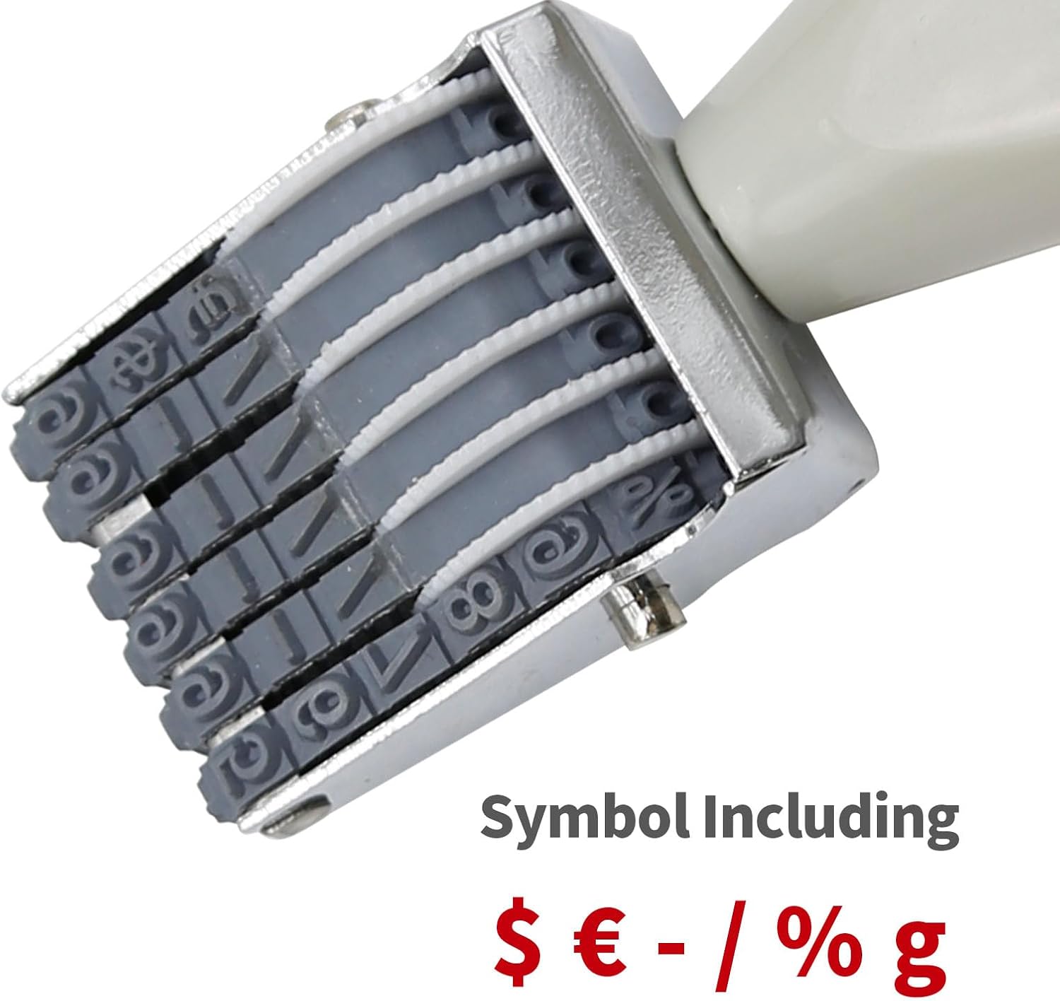 - [DESIGN] The automatic numbering stamp features a durable and rustproof alloy structure combined with a user-friendly plastic turntable. It is designed for easy manipulation and cleaning. The stamp consists of 8-wheel rotating belts, each containing ten Arabic numerals (0-9), 2 unique symbols ($, , -, /, %, g), and a blank character. The length of the code can be adjusted from 1 to 6 characters according to your needs. Each belt can be adjusted independently. Please note that the number and order of symbols may vary from batch to batch.