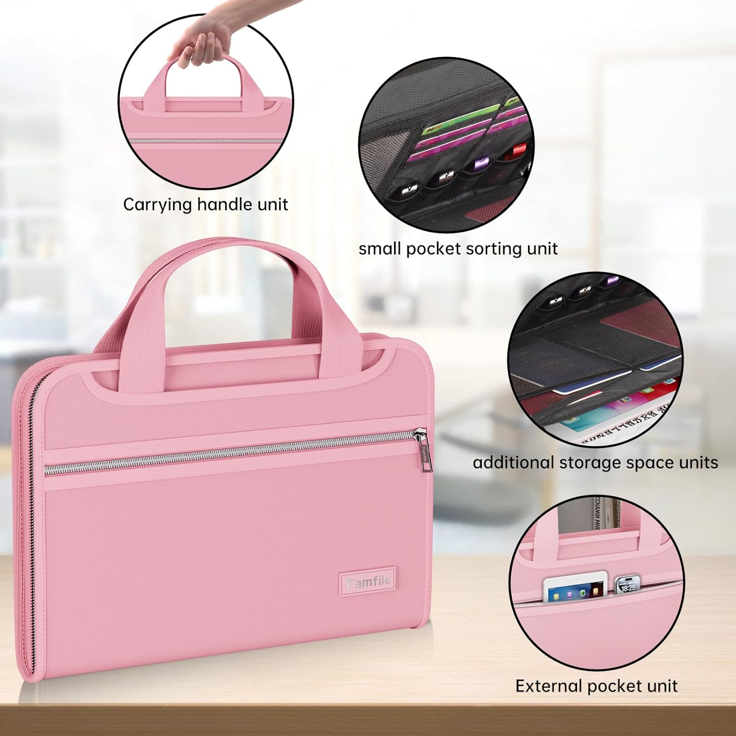 - [Convenient Details]: Attach an external pocket for mobile phones, passports, ID cards, bank cards, pens, cash, coins, etc. The folder has a unique double zipper design and a portable hand strap. This design is designed to make files better preserved and easy to carry. The portable folder has classification labels to help you keep your documents organized. Suitable for work, life and study scenarios