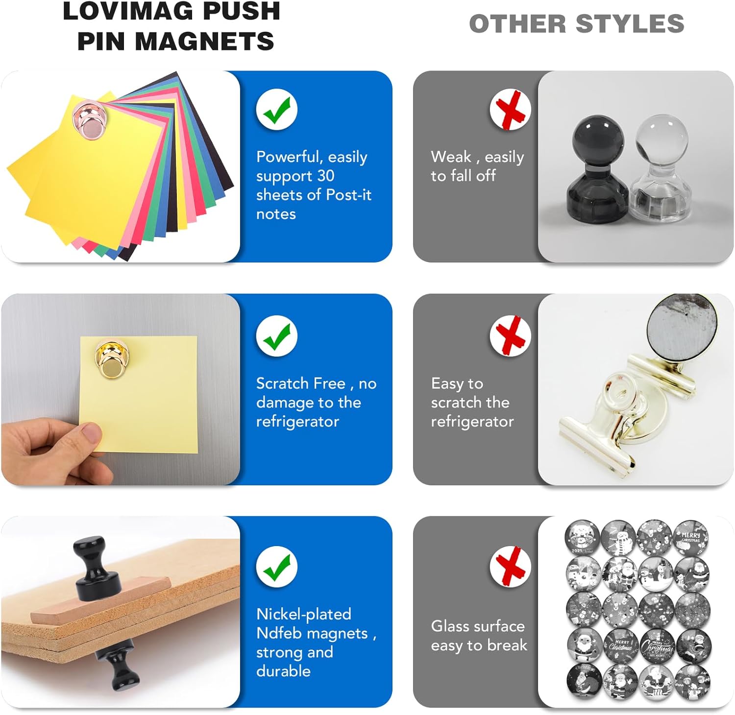 LOVIMAG Colorful Fridge Magnets, 25pc Strong Push Pin Metal Magnets for Whiteboards, Lockers, Offices & Kitchens